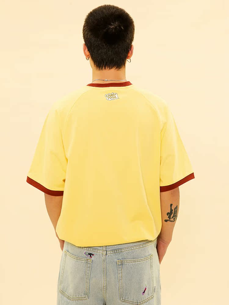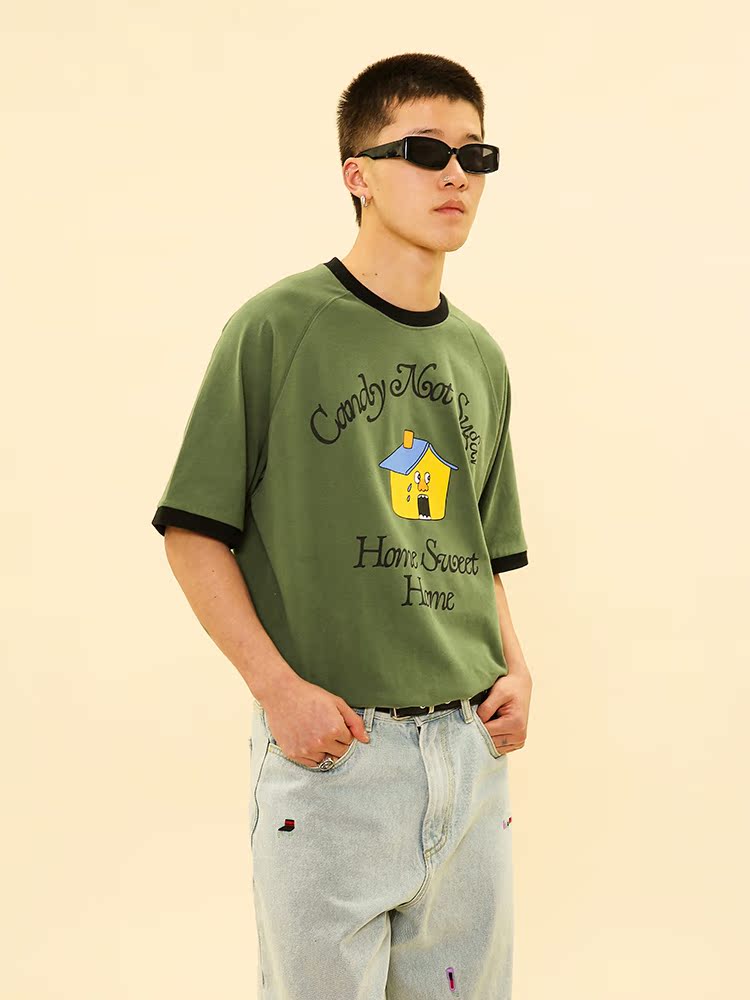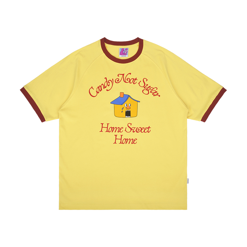 Candymade 21ss Sweet home series thread stitching small house print couple round neck short sleeve T-shirt
