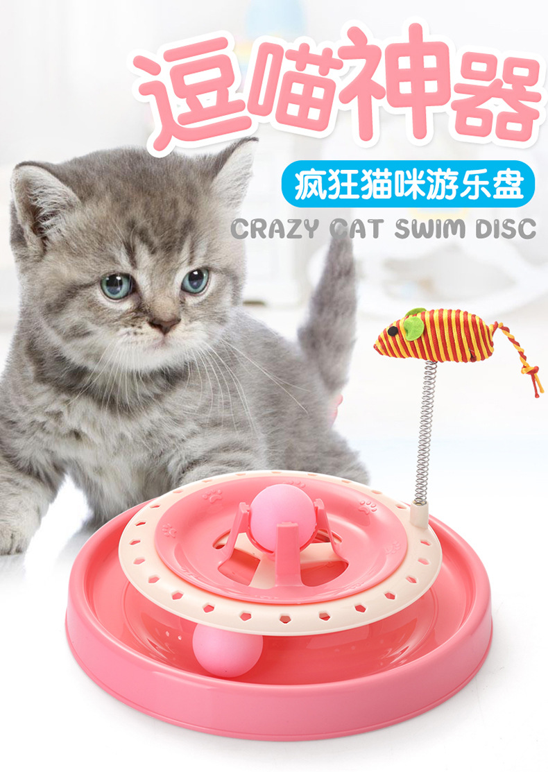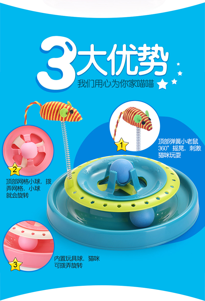 New Spring Mouse Cat Turntable Toy Double Track Ball Pet Pleasure Disc Teasing Cat Plastic Round Cat Turntable
