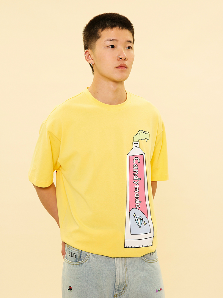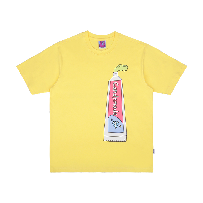 Candymade 21ss Sweet home series yellow toothpaste Cartoon print couple round neck short sleeve T-shirt