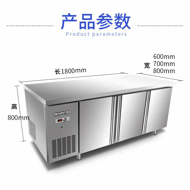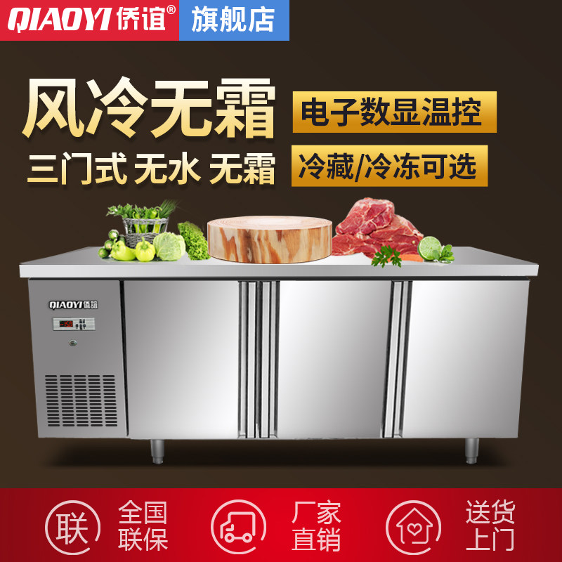 Qiaoyi air-cooled three-door workbench refrigerated freezer commercial horizontal refrigerator frozen milk tea hotel kitchen preservation