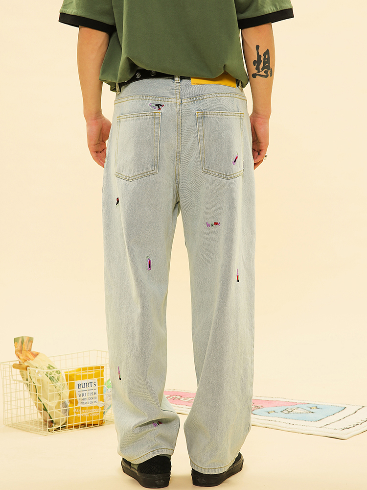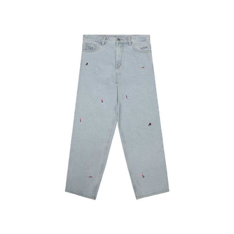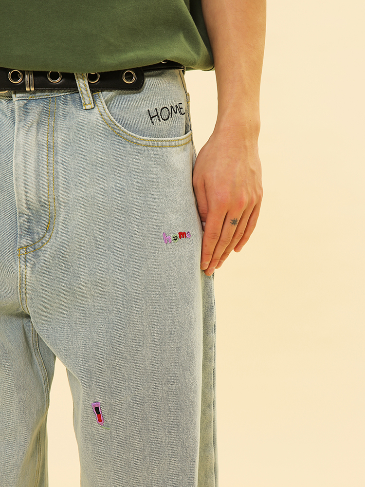 Candymade 21ss Sweet home series vintage washed wild couple embroidered denim pants