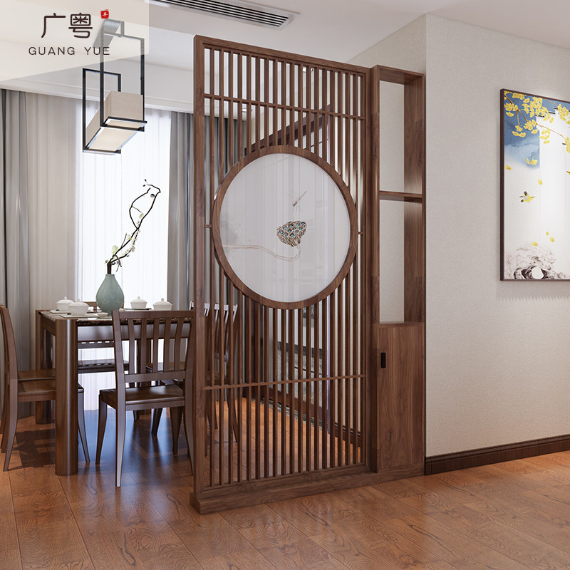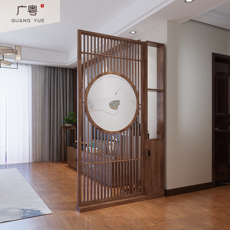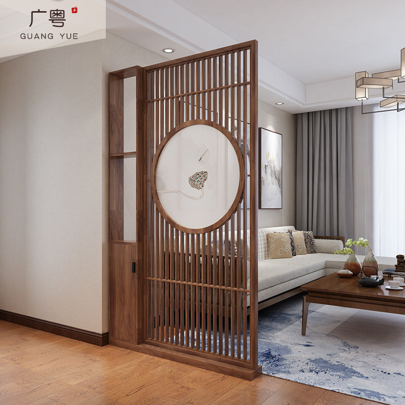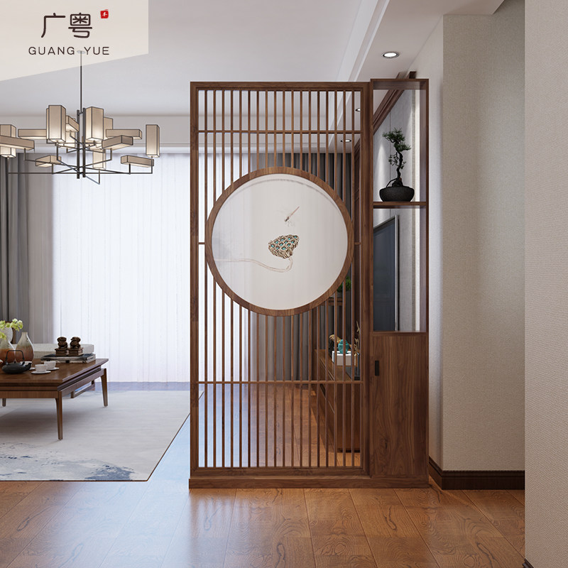 New Chinese style barrier entryway cabinet screen partition lotus all solid wood home living room Zen Bogu shelf shelf