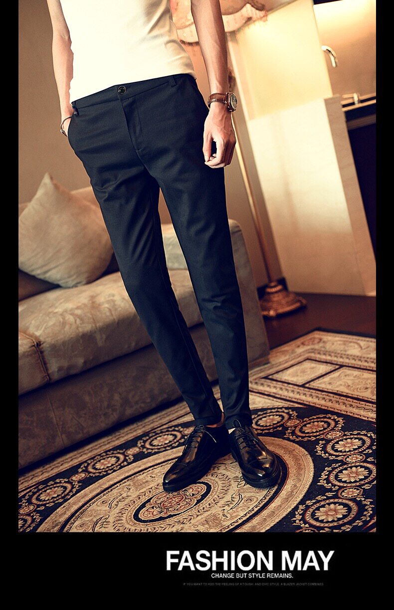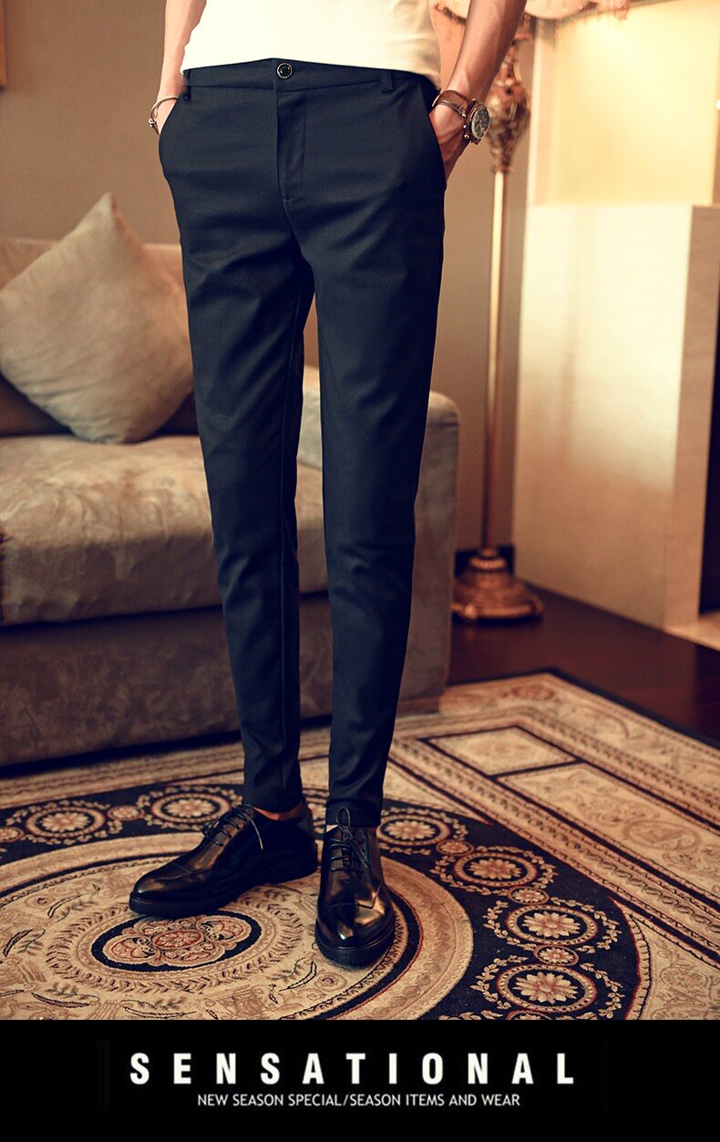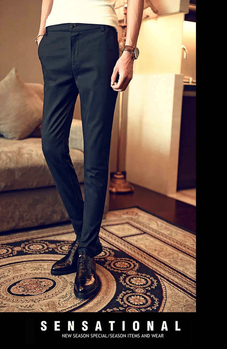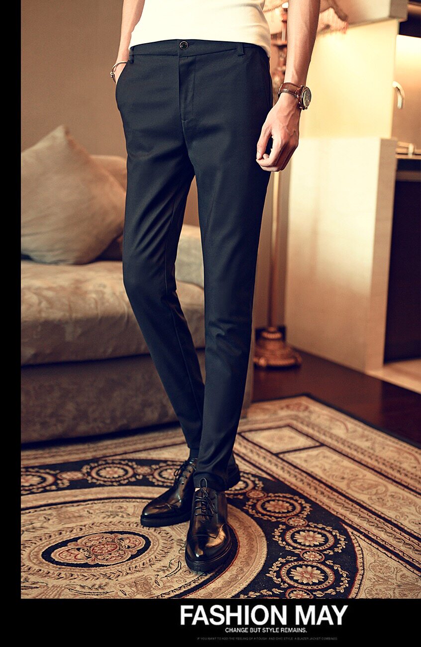 Hong Kong tide brand spring and summer British versatile trousers men's small leg pants Korean version cropped pants youth trousers slim stretch