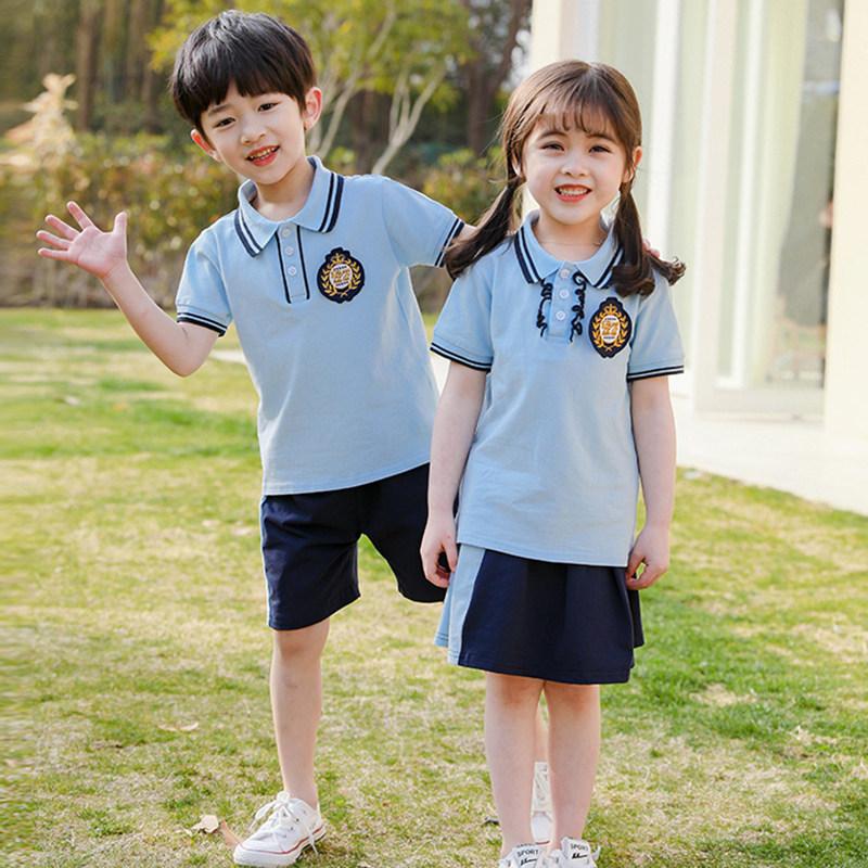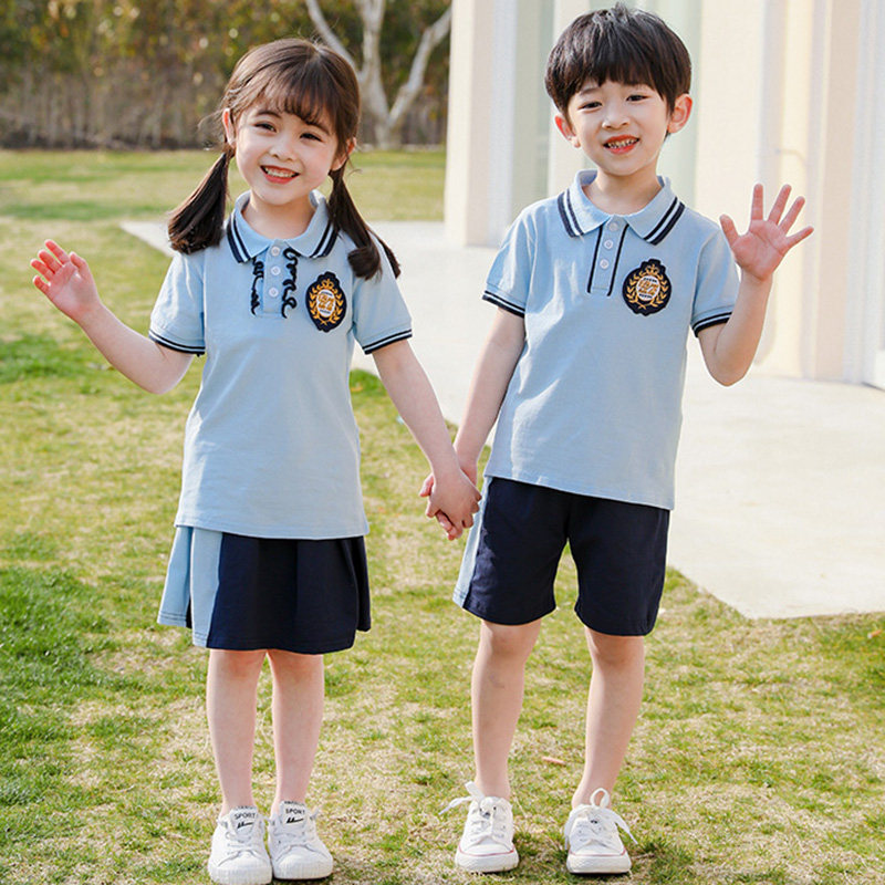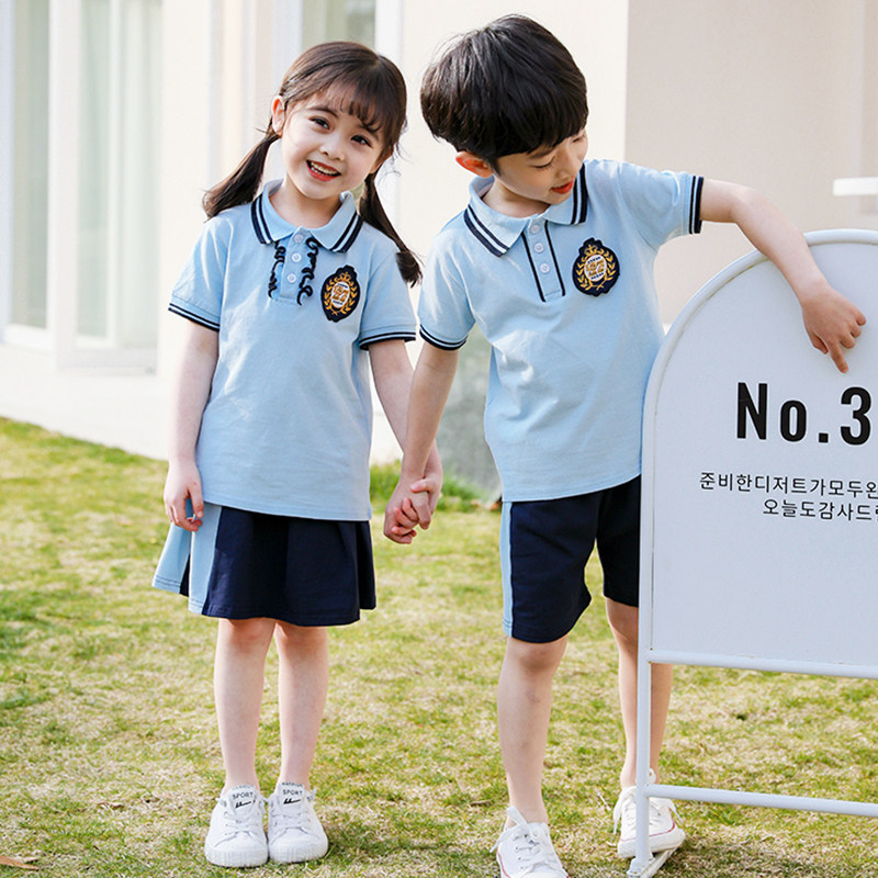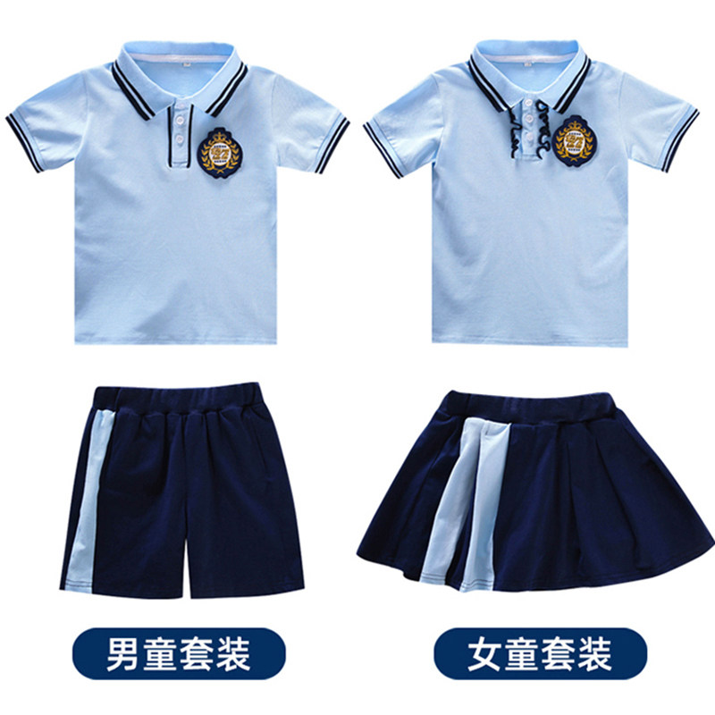 Kindergarten garden clothes summer children's British sports class clothes spring and autumn clothes cotton school uniform suit primary school students summer blue