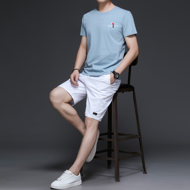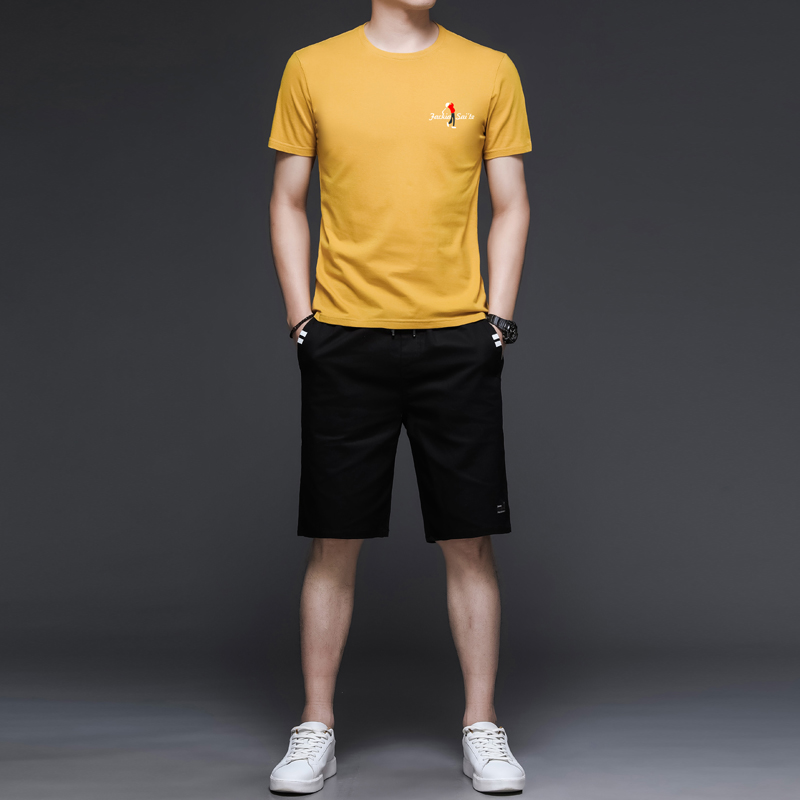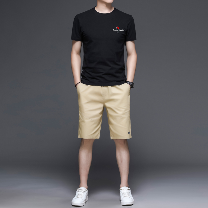 Short-sleeved T-shirt suit men's summer thin loose casual sports with two-piece set of five-point shorts men's T-shirt