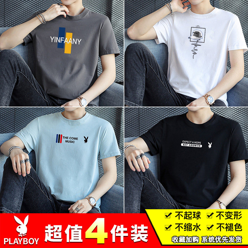 Playboy Summer Men's Short Sleeve T-shirt Pure Cotton 2022 New White T-Shirt With Dresses Trendy Clothes Trendy Clothes