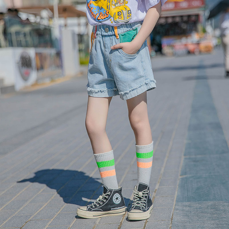 Girls' shorts summer clothes 2022 new middle-aged children's summer girls Western style jeans outer wear thin children's pants