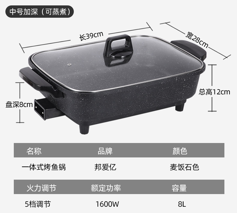 Large grilled fish all-in-one pot commercial household non-stick barbecue pot multi-functional frying pan hot pot paper-wrapped fish pot grilled fish stove