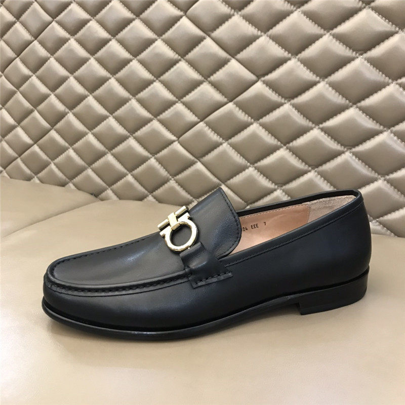 European station leather shoes men's business casual metal horsebit buckle a pedal European goods leather horseshoe buckle loafers tide