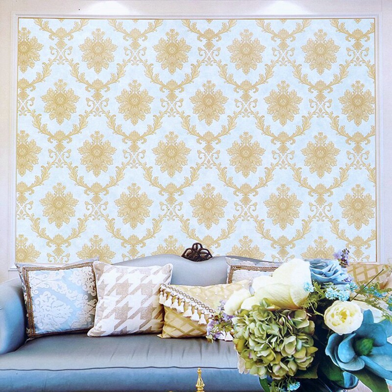 3D rugged and light golden light lavish simple European wallpaper light blue light grey European style Damascus wallpaper