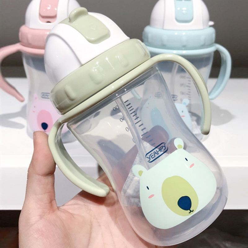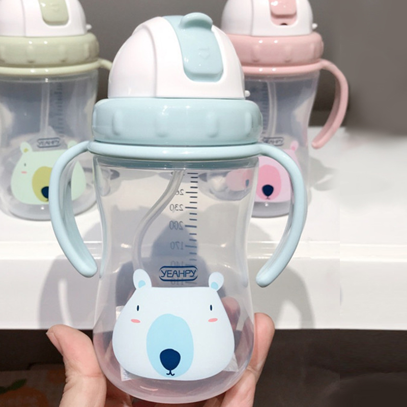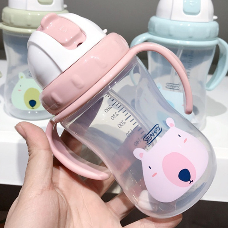 Primary school children's handle straw cup cute baby learning to drink cup kettle leak-proof anti-fall with scale 300ml