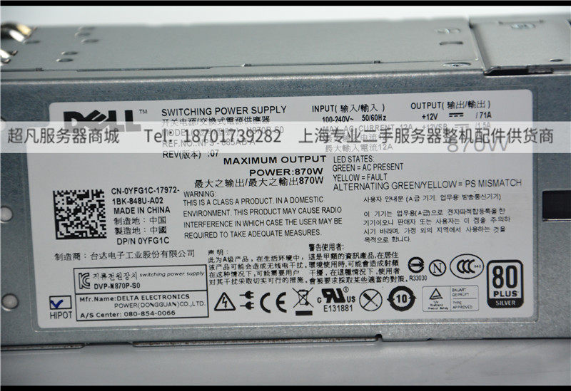 Dell R710 870W power A870P-00 N870P-S0 YFG1C 7NVX8 modified 12V
