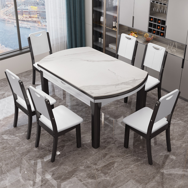 Rock board dining table and chair combination home small apartment modern simple solid wood rectangular telescopic dual-purpose variable round table