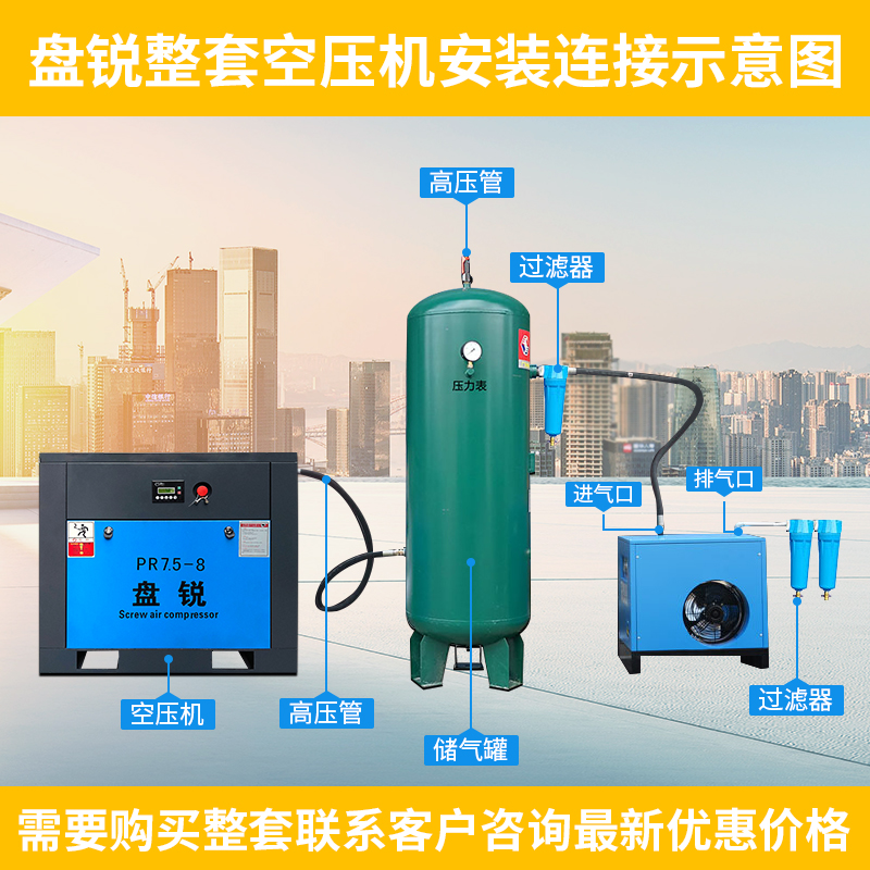 7.5kw permanent magnet frequency conversion screw machine complete set