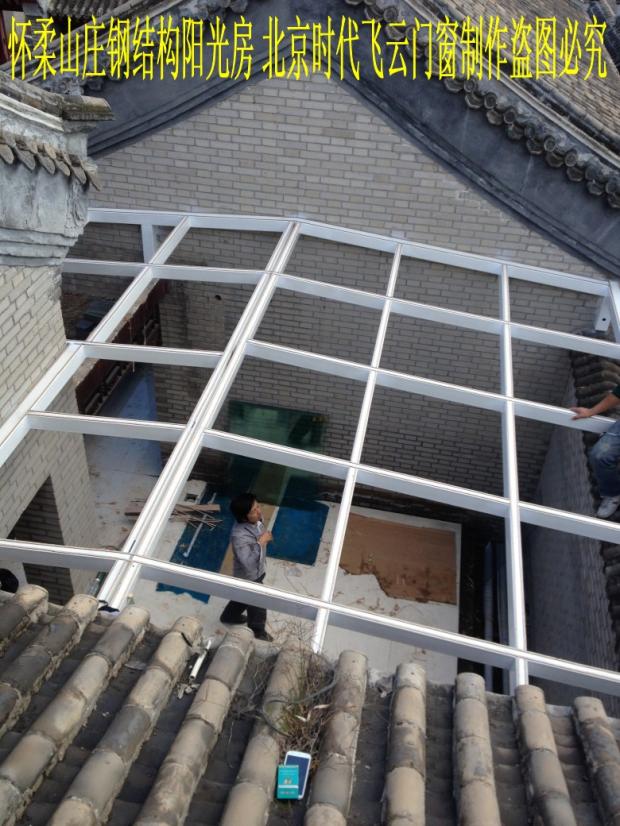 Steel structure greenhouse Sealed terrace underground courtyard laminated tempered glass broken bridge aluminum doors and windows greenhouse flower shed