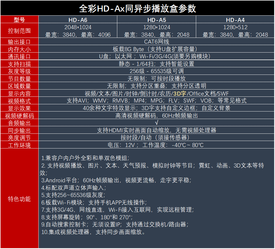 Grayscale HD-A4A5A6 synchronous and asynchronous full-color player grayscale remote sending card mobile phone wireless LED control
