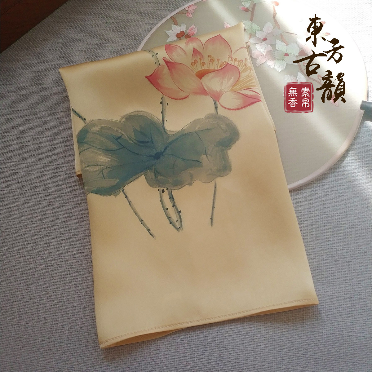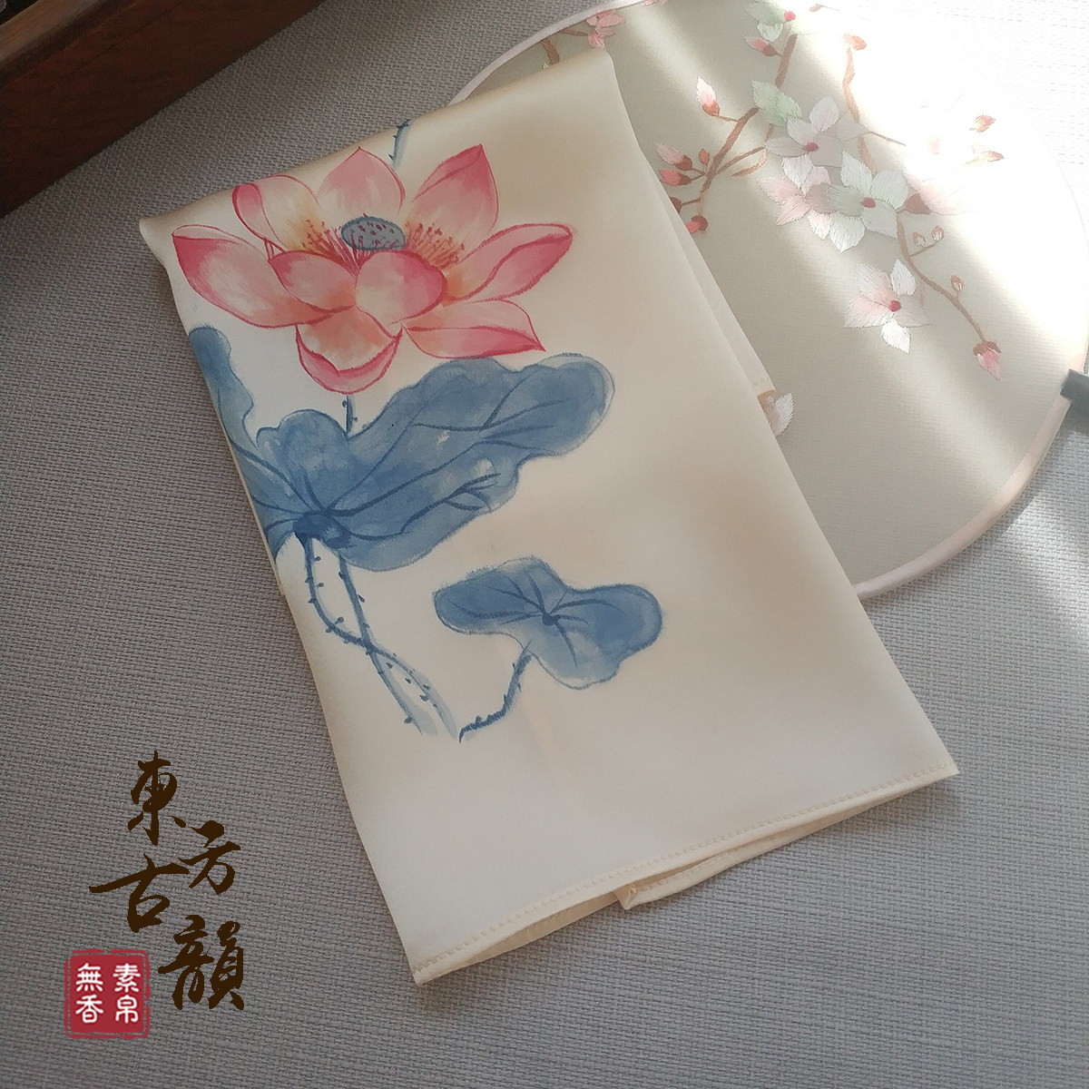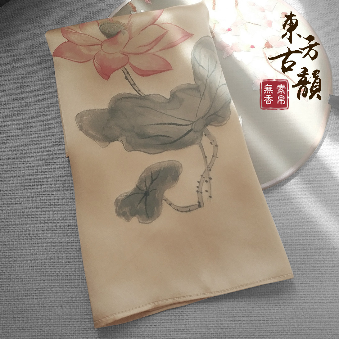 Subo fragrance-free SUBERSILK silkworm silk hand-painted Chinese ancient style lotus pattern sweat-absorbing square handkerchief