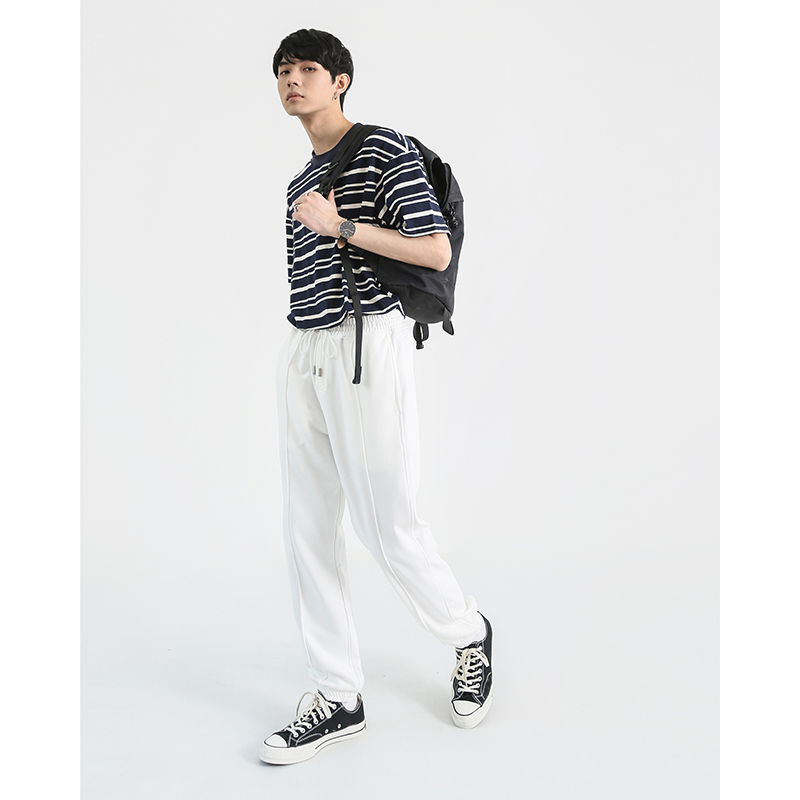 Summer exquisite casual tie pants loose men's all-match iron-free sports closing trousers white sweatpants thin