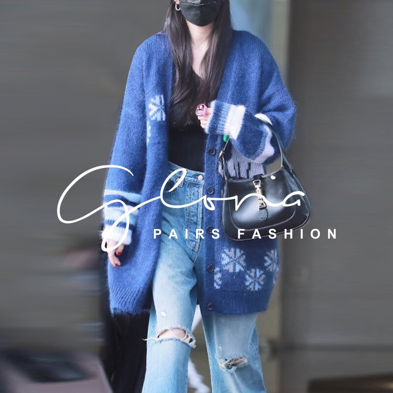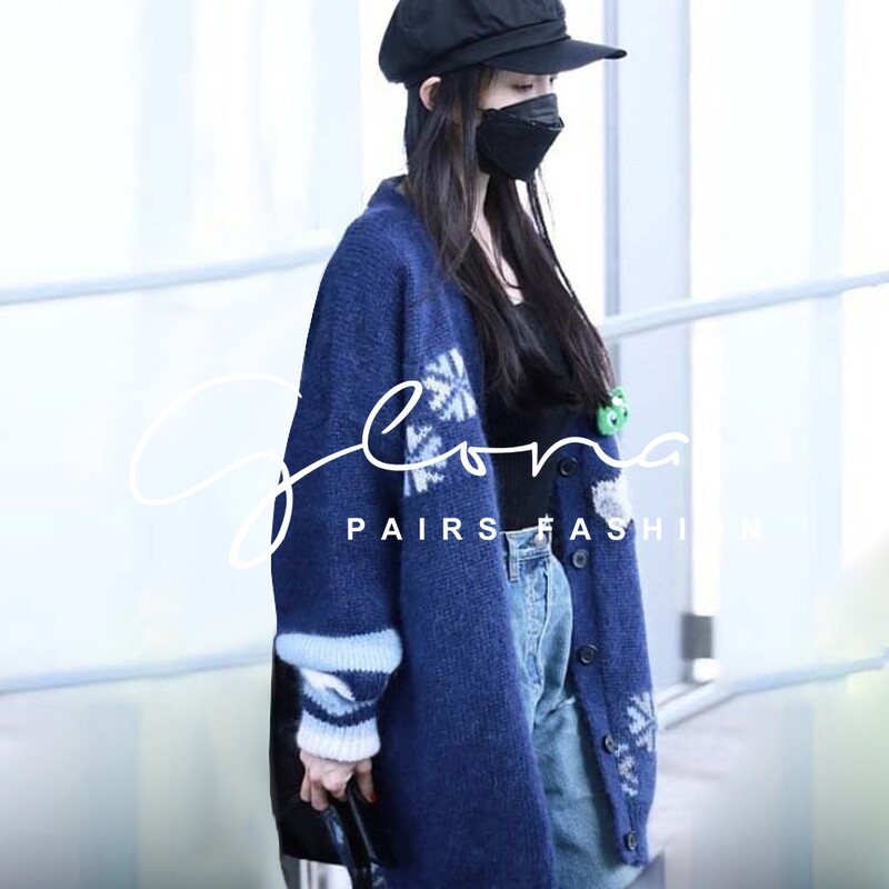 Sandro duffy Yang Mi same polar bear cardigan knitted sweater women's spring lazy style loose sweater outer wear