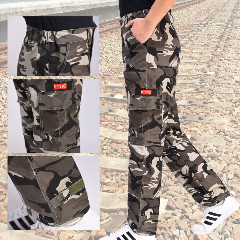 Casual Big Code Outdoor Laobao Camouflated Pants Men's Summer Migrant Workers Clothing Pants Loose Slim Fit Straight Tube Bunches Pants Cotton-Taobao