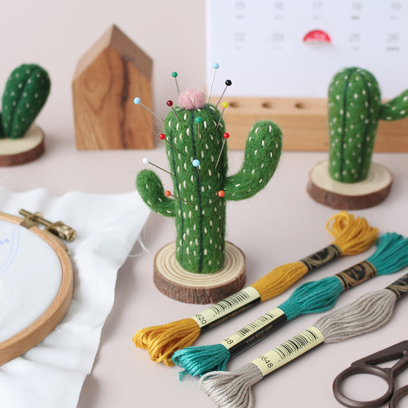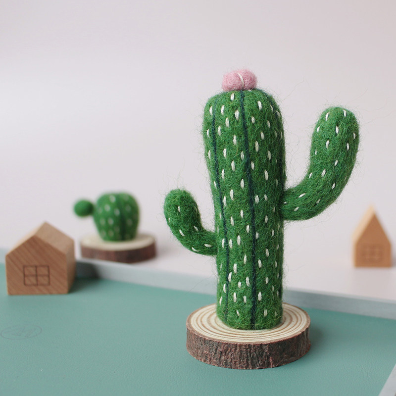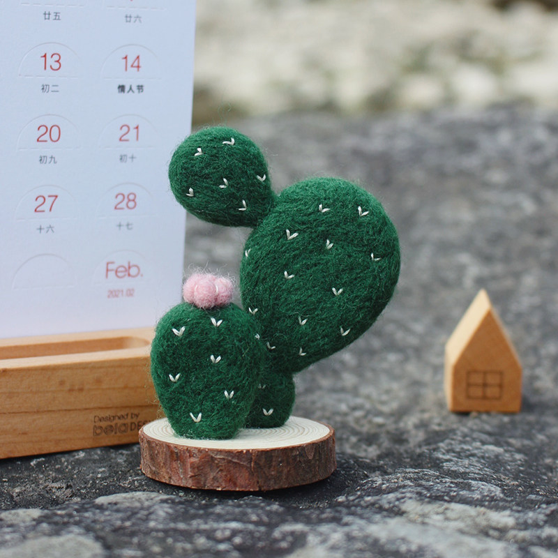 Wool felt poked the Ledy material bag by hand to make a cactus car pendulum to send boyfriend a birthday present