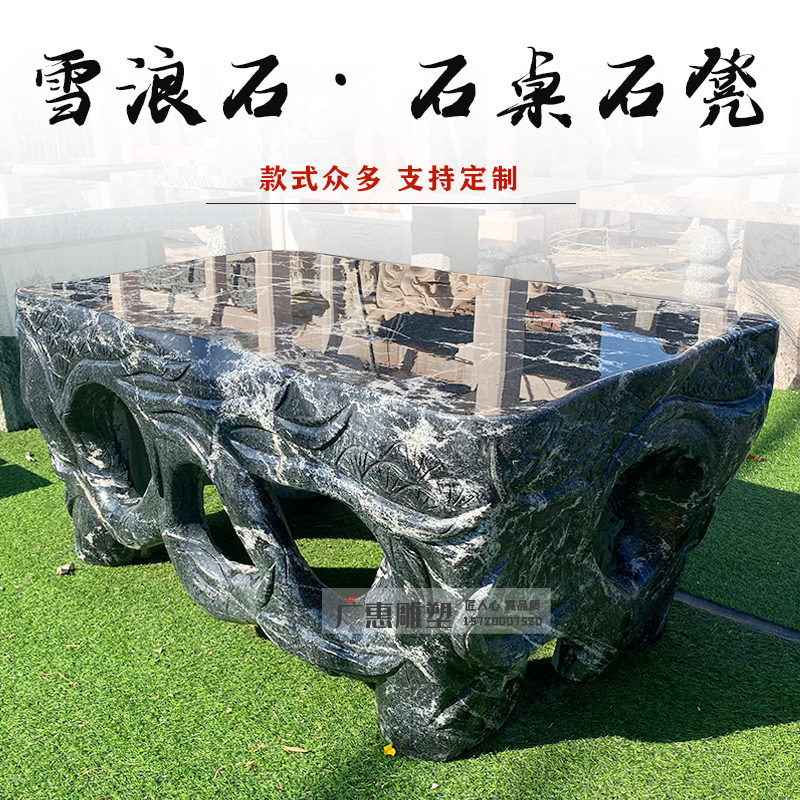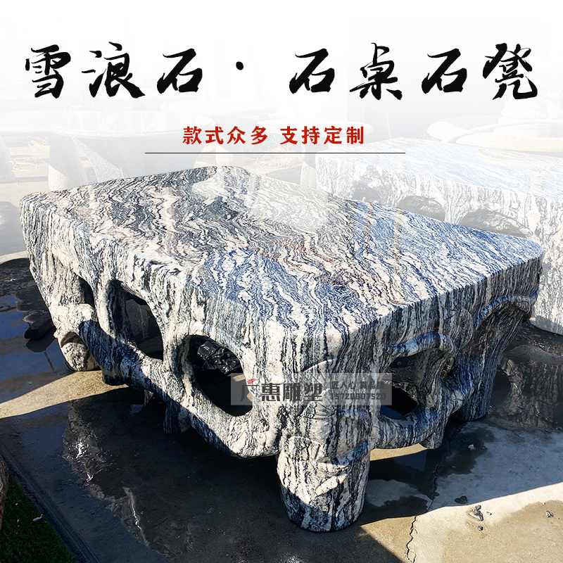 Stone table stone stone garden a set of outdoor natural marble tea table household outdoor long villa alien table