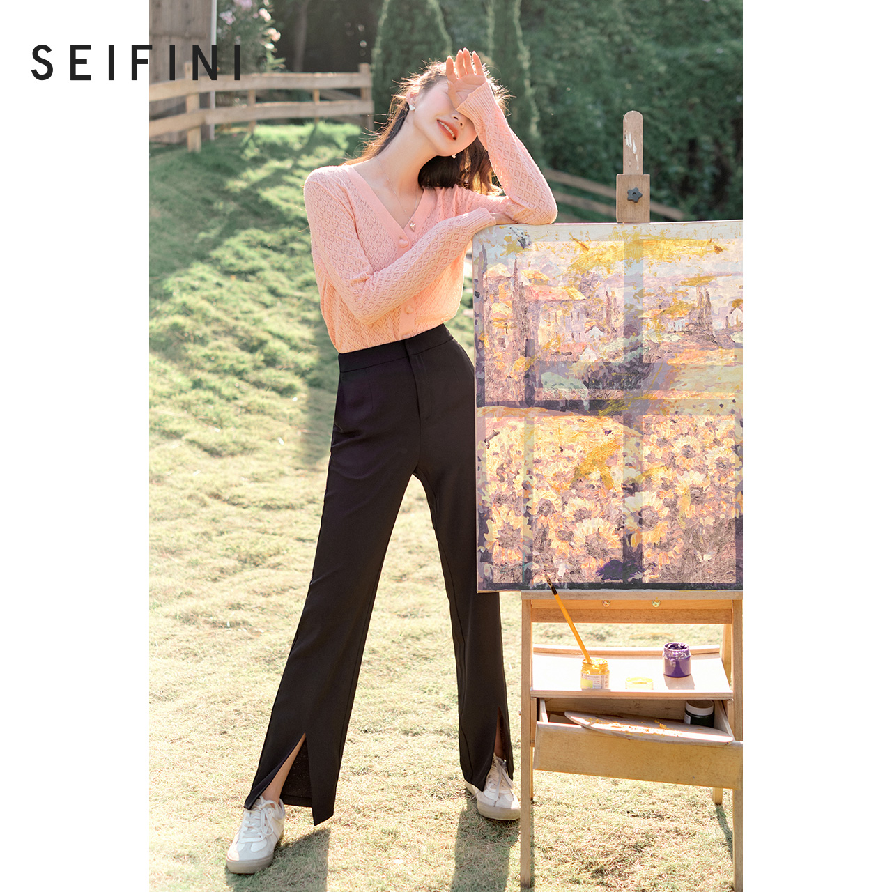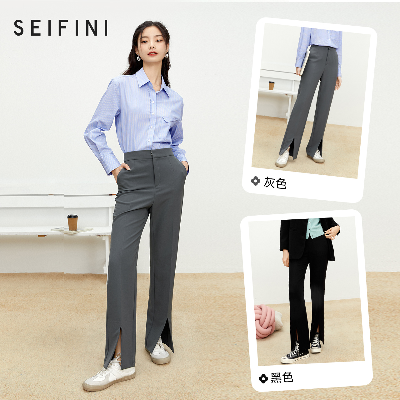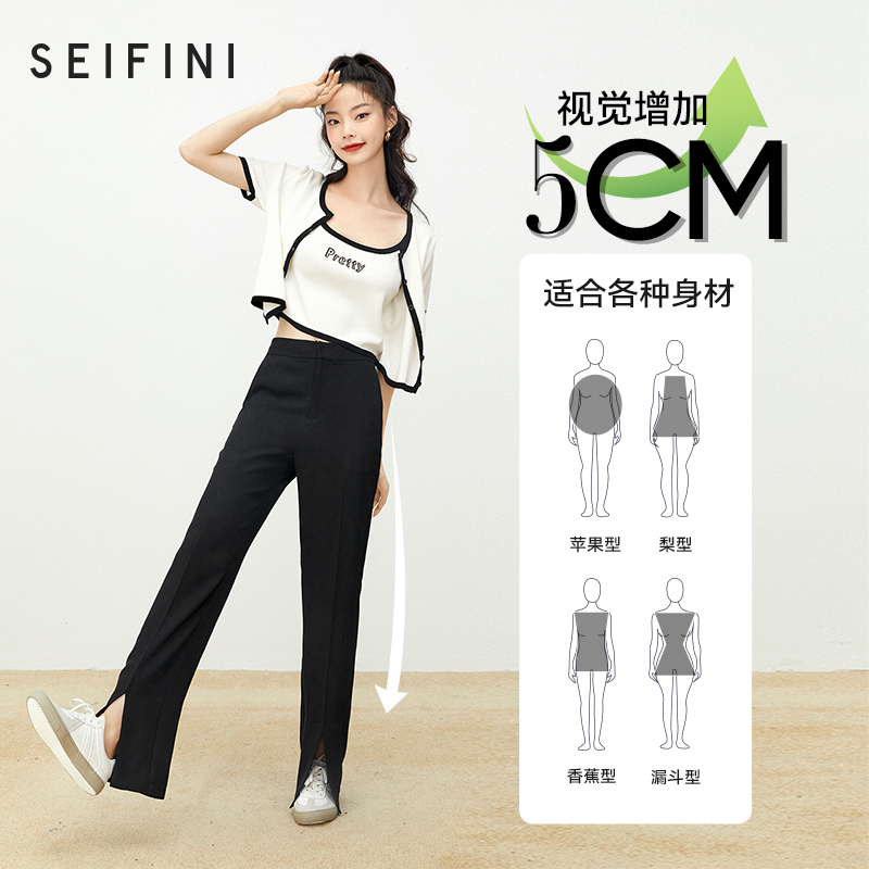Poetry Fan Le Casual Pants Woman 2022 New Spring Breeze High Waist Display Slim Straight Cylinder Open Fork Tug Pants Broadlegged Pants