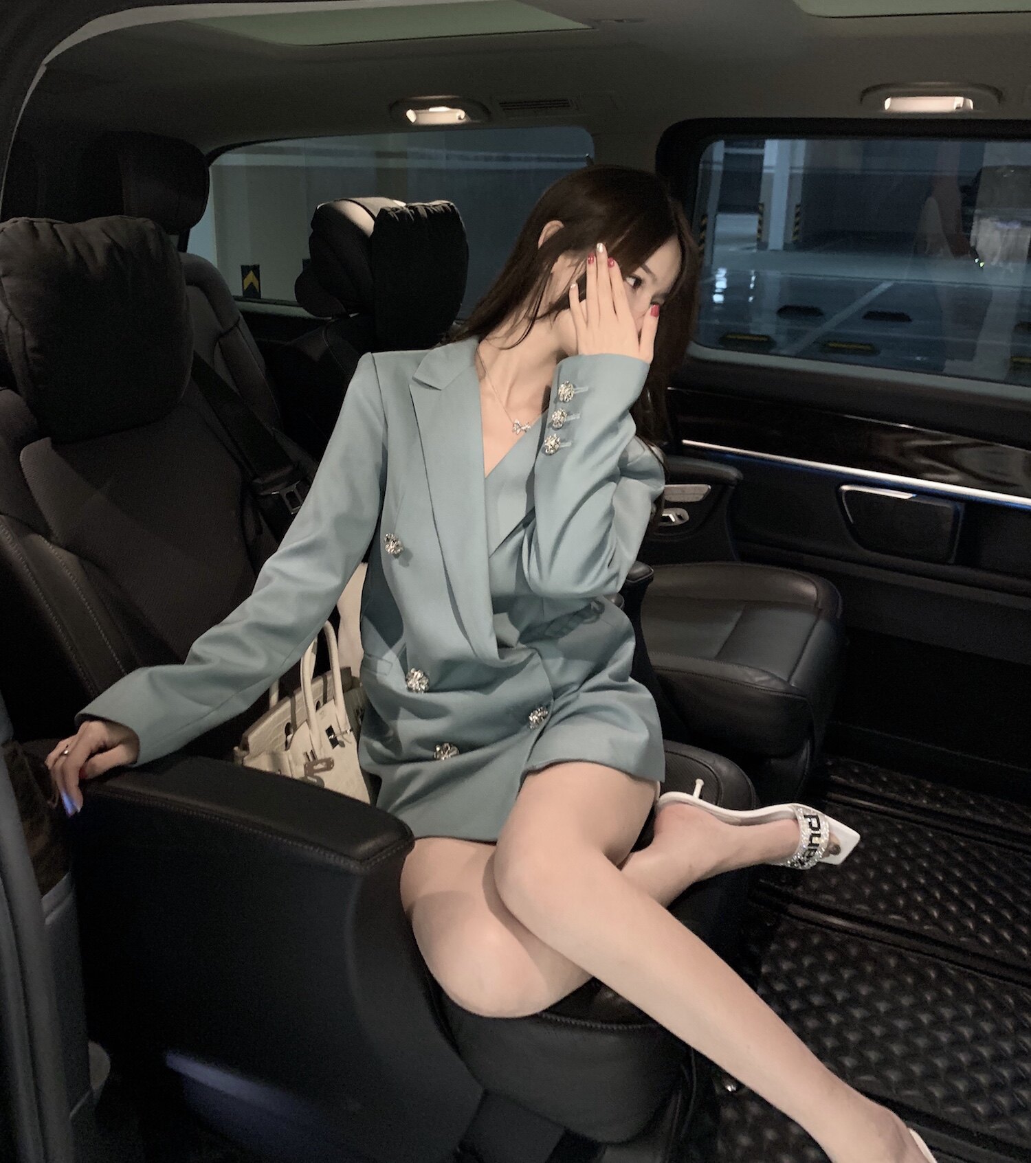 CHICYOU (female group si suit) white lake water green flower drilling buckle with long version of young girl's delicate name Yuanyu