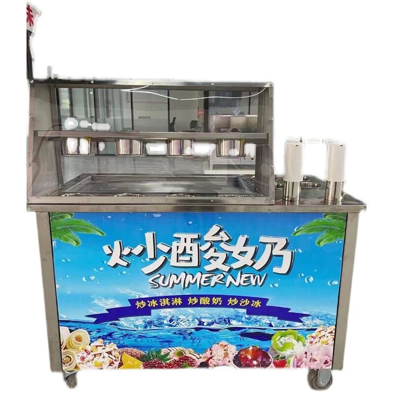 Net red multi-functional fried yogurt fried ice cream roll fried milk fruit machine commercial stall fried ice porridge thick cut yogurt equipment