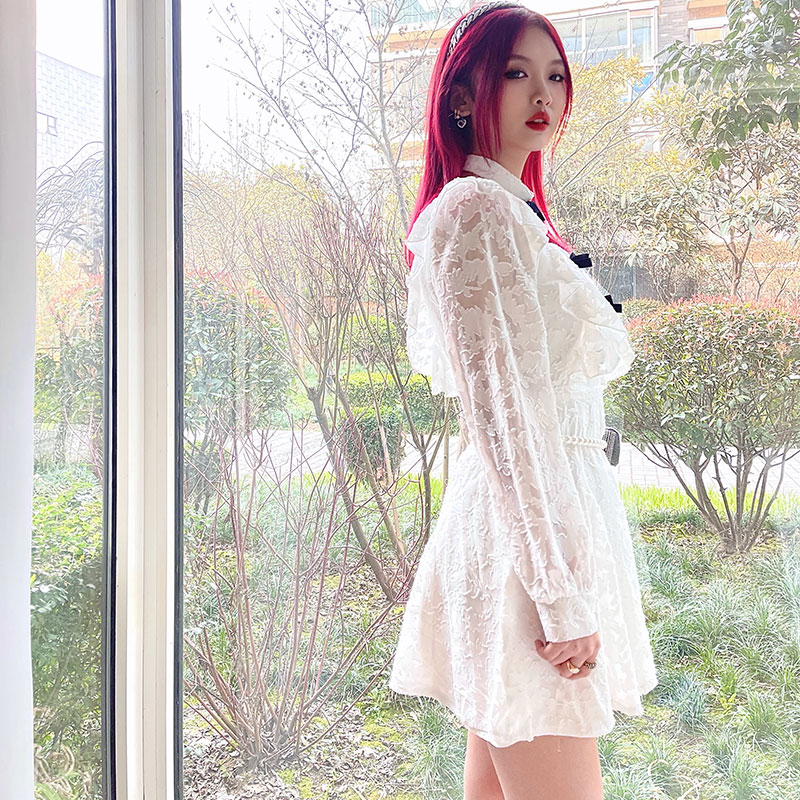Loripa women dressed with a neck butterfly - tied dress 2022 Spring and Autumn new style white dress