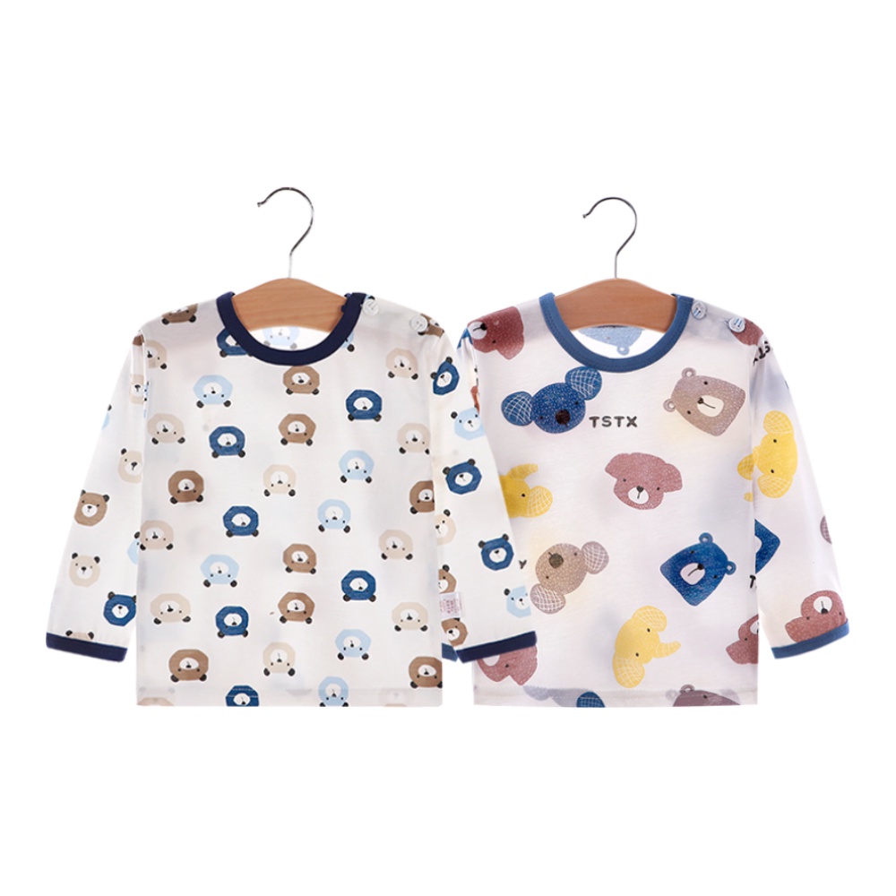 Summer loungewear breathable thin long sleeves infant boy underwear girls pajamas T-shirt air conditioning 2 pieces of tops
