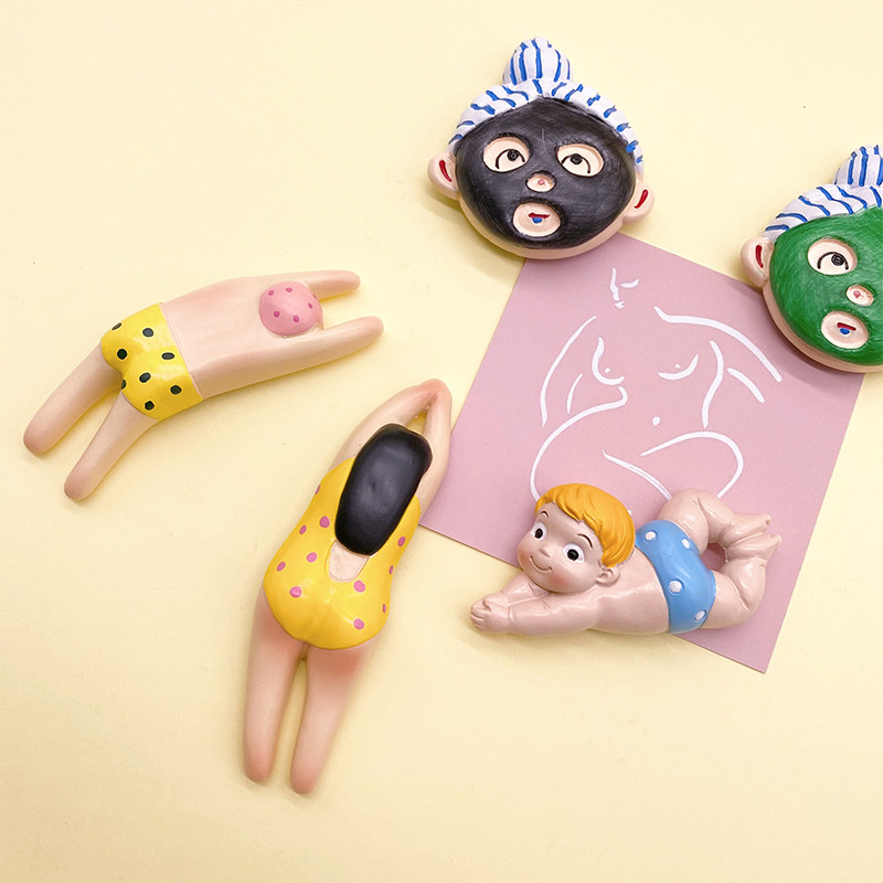 Creative Cartoon Cute Beach Swimming With Strange Fridge Post Solid Resin Magnet Magnet Decorative message sticker