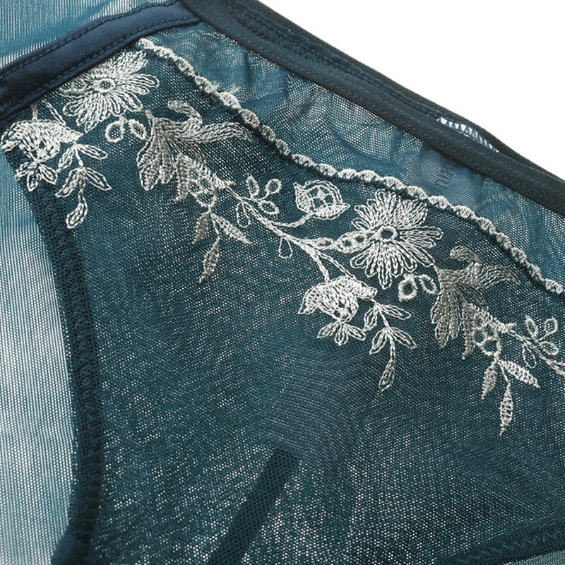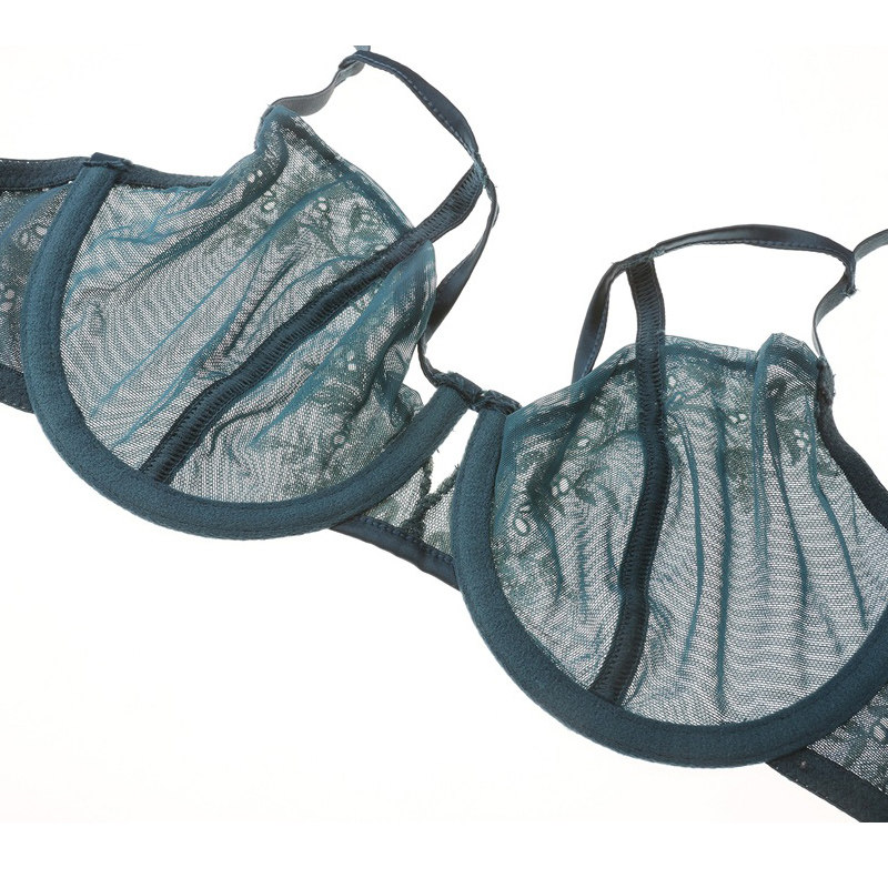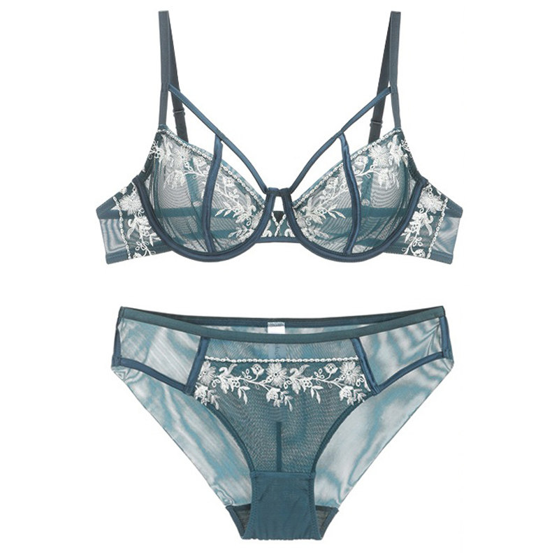 Style lingerie suit Perspective ultra-thin web yarn transparent C cup bra hollowed-out embroidery lace sexy lingerie suit