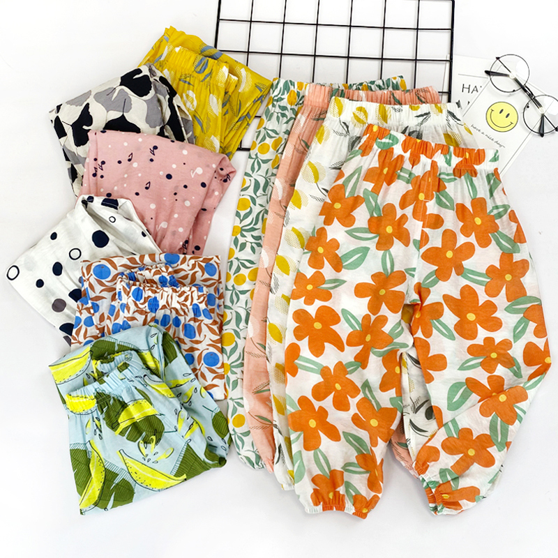 Boys and girls anti-mosquito pants ice silk cotton linen summer thin children's anti-mosquito pants air-conditioning pants baby lantern pants summer clothes