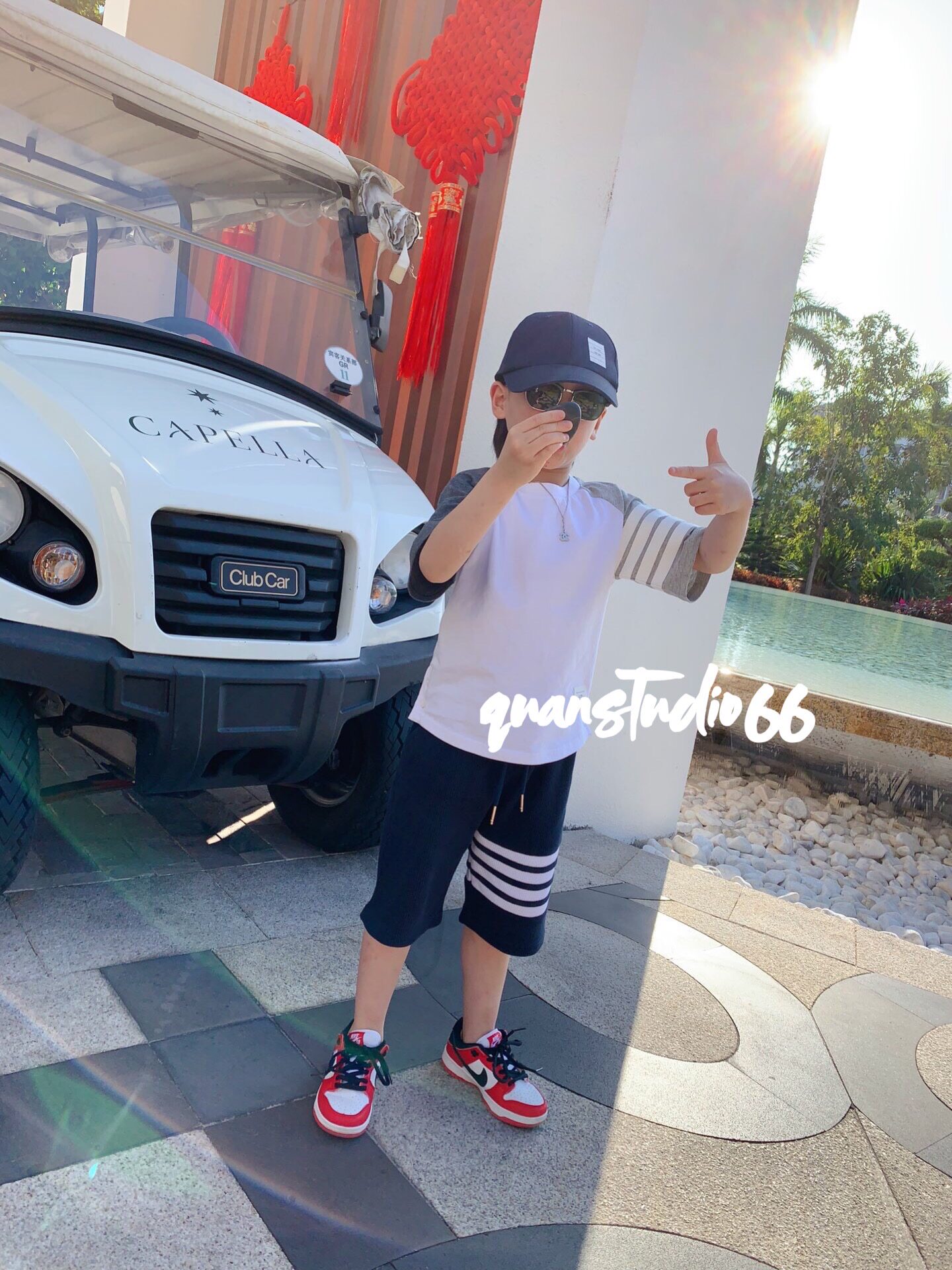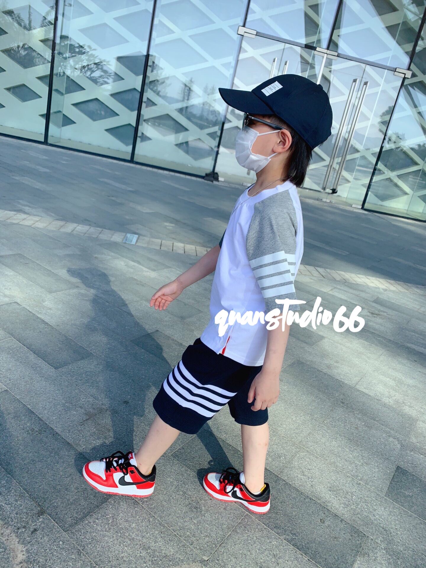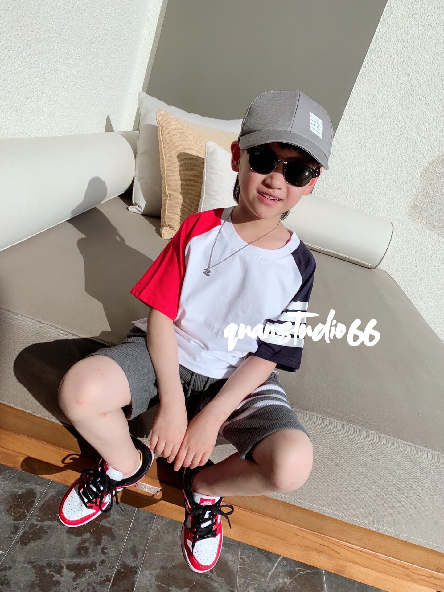 Quanma Home Korea Children's Clothing Children Insert Shoulder Sleeve Round Collar Short Sleeve T-shirt Baby Waffag Sports Shorts