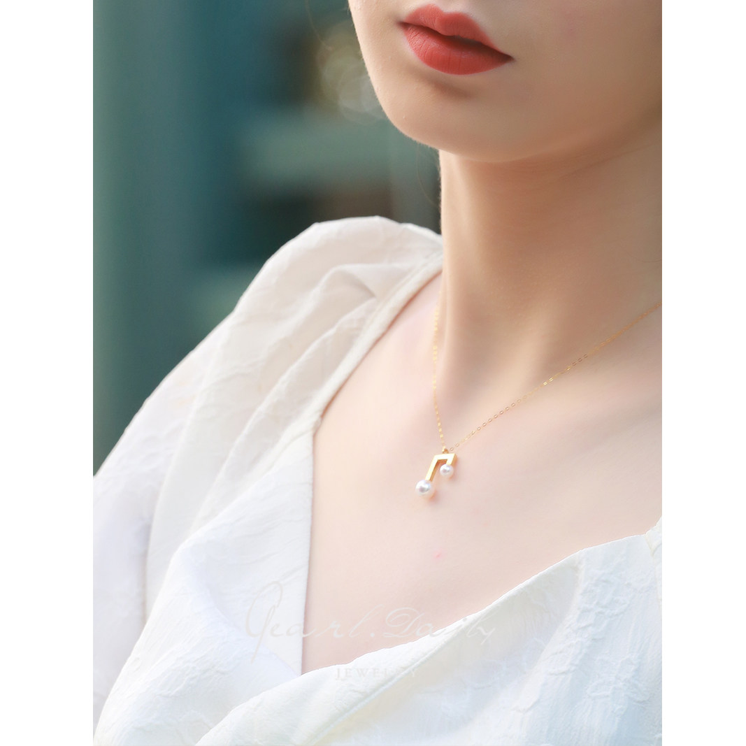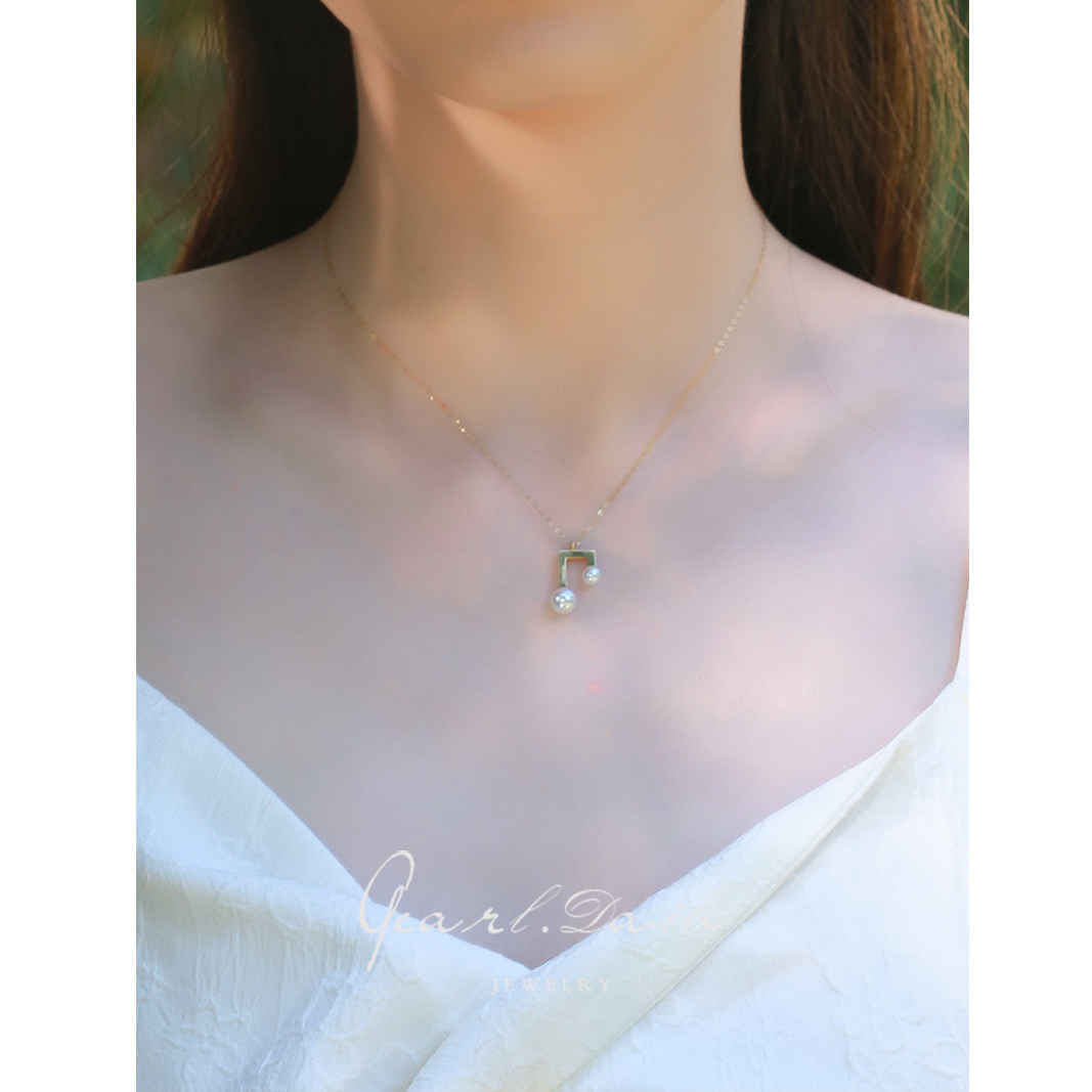 (note) 18K gold pendant inlaid with positive round extremely light flawless pearl Akoya glossy necklace gift