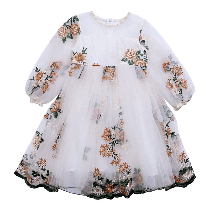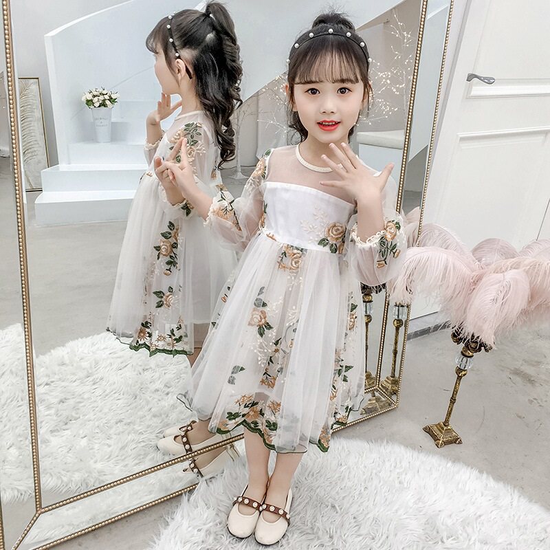 Girls Dress Spring and Autumn 2022 new Han - Edition embroidery mesh dress for children's gas dress