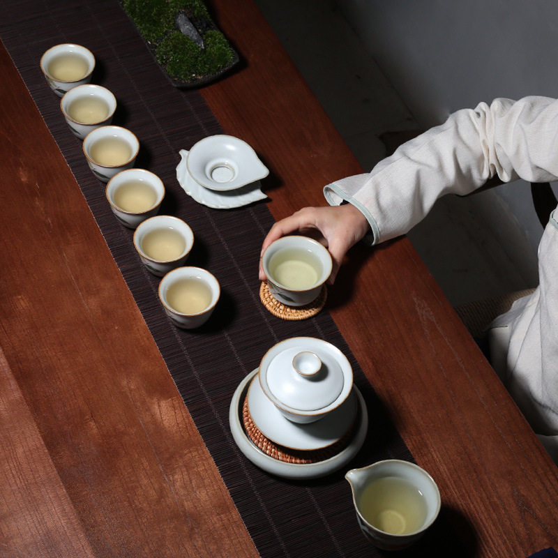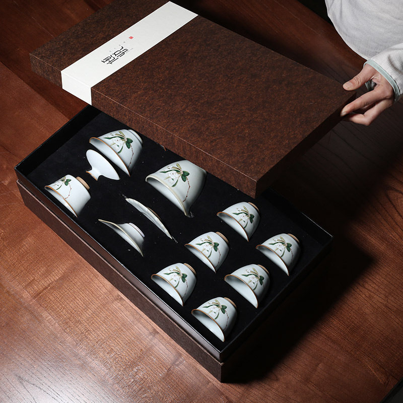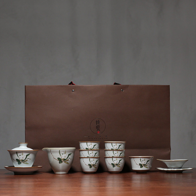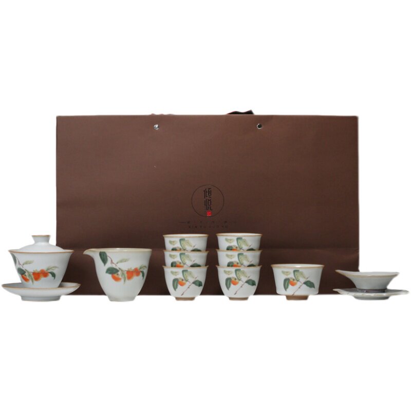 Craftsman tea set Ru kiln open film everything is like kung fu tea set home office Persimmon teapot tea cup gift box