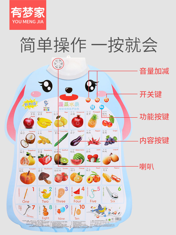Baby Enlightenment Sound Flip Chart Sounding Children's Early Education Literacy Phonetic Digit Cognition Pinyin Alphabet Wall Sticker