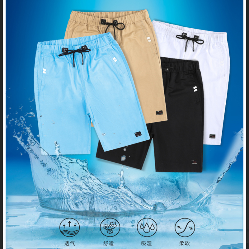 Pure Cotton 50% Pants Men Summer Thin 50% Pants Sports Casual Pants Men's Pure Color Minimalist Beach Pants Shorts Male