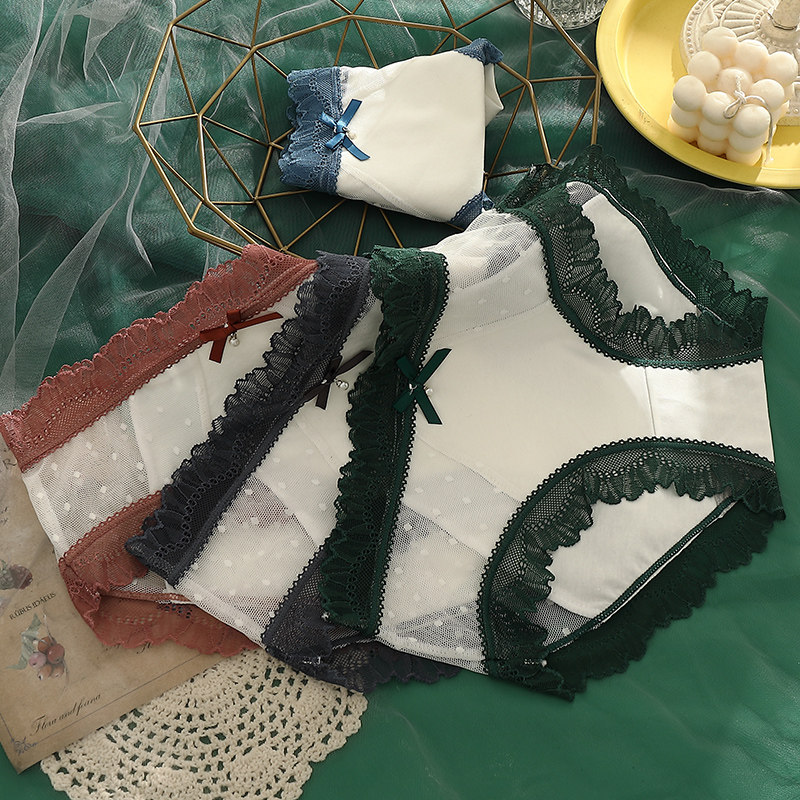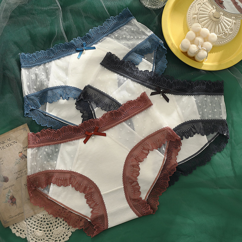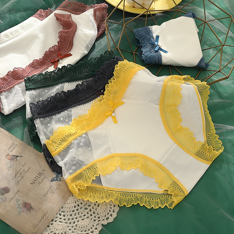 Underwear women's pure cotton antibacterial mid-waist sexy lace cotton crotch seamless ladies triangle breathable girls shorts head