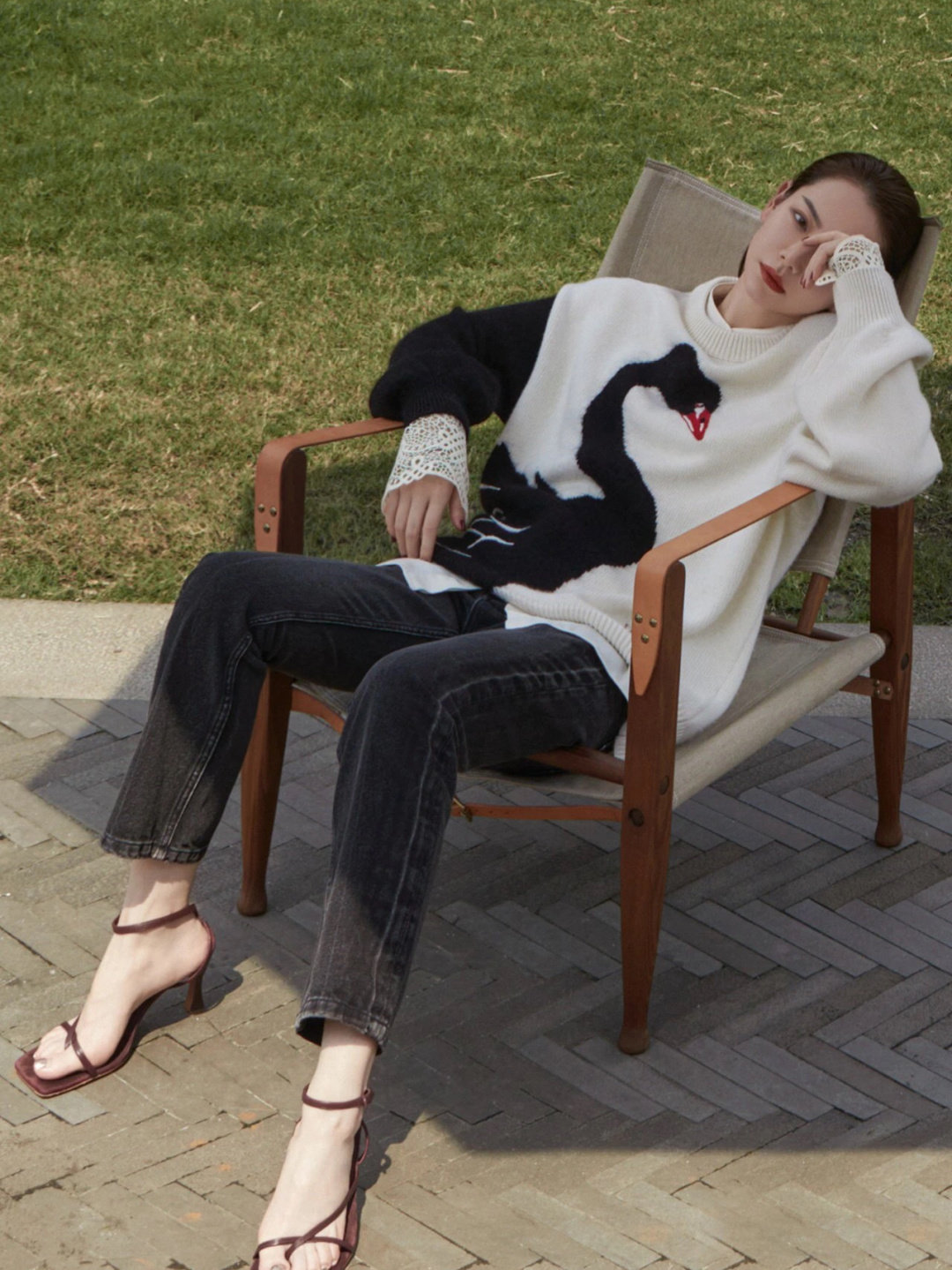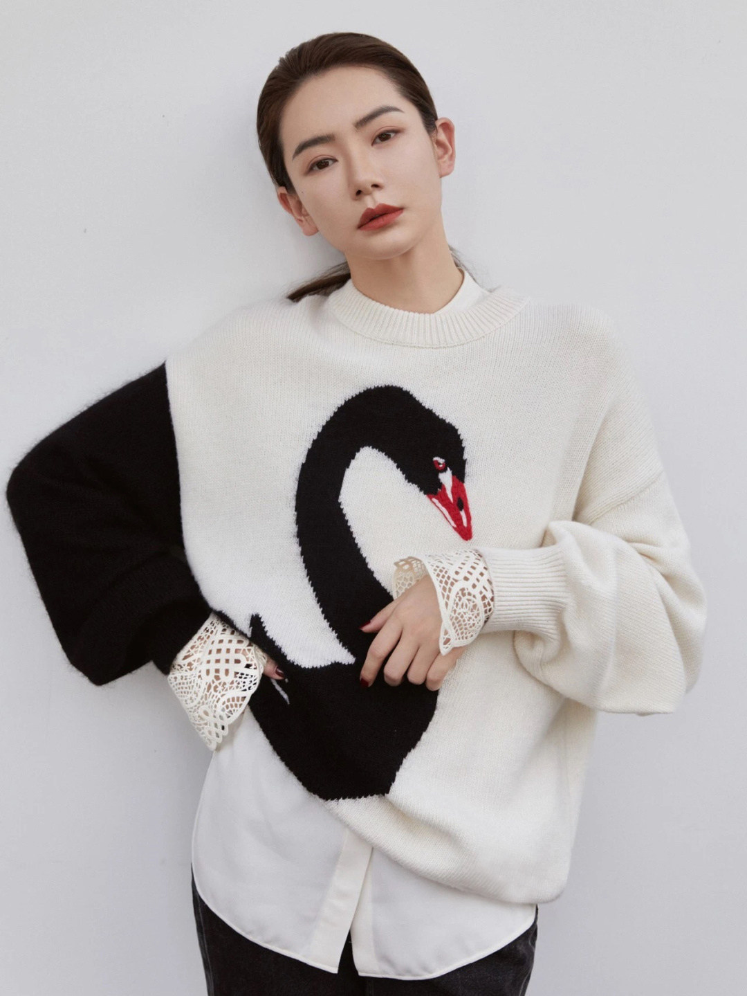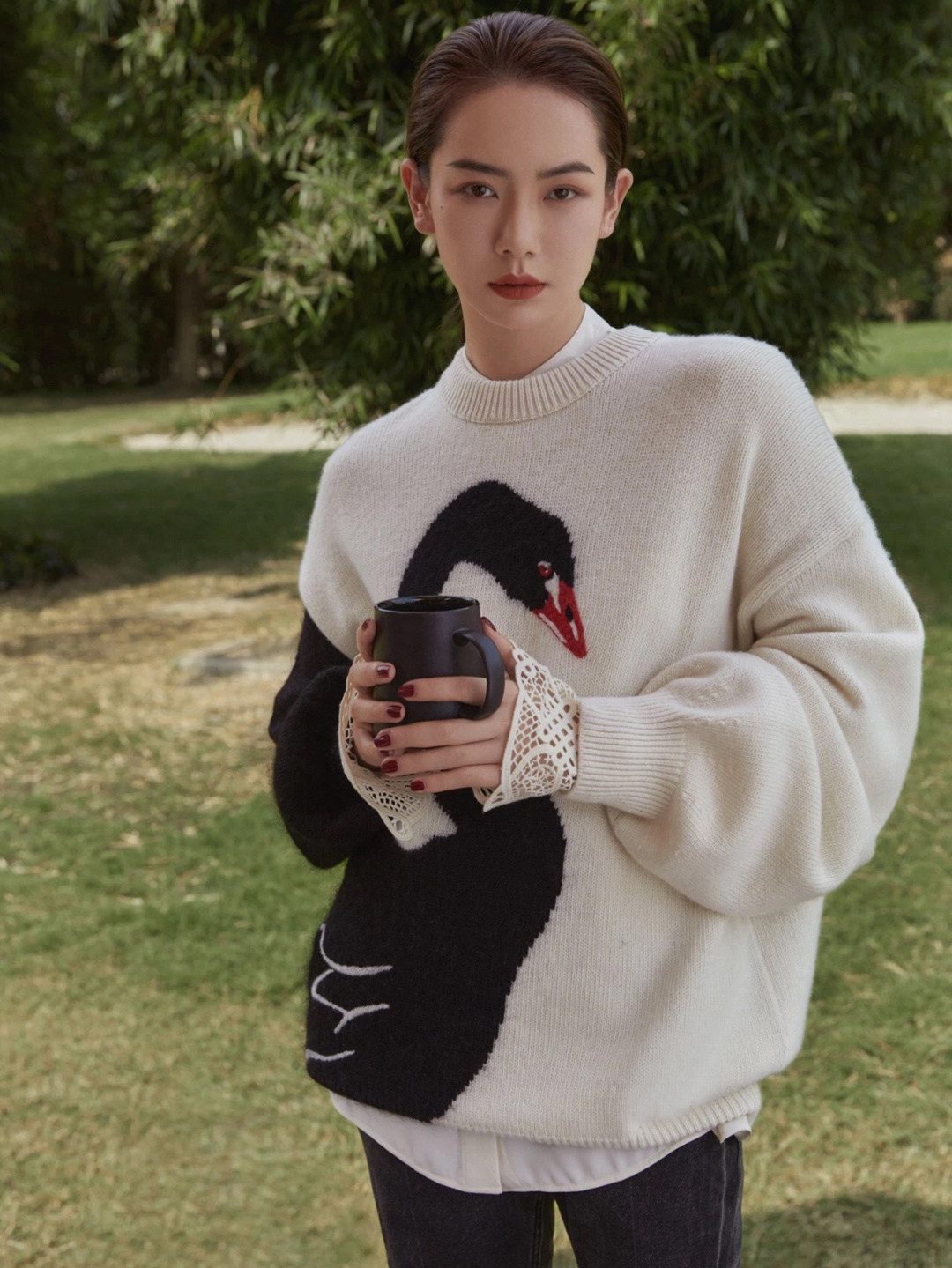 French maje Qi Wei stars the same handmade embroidery swansong Lazy Wind Wool wool cover knitted sweaters