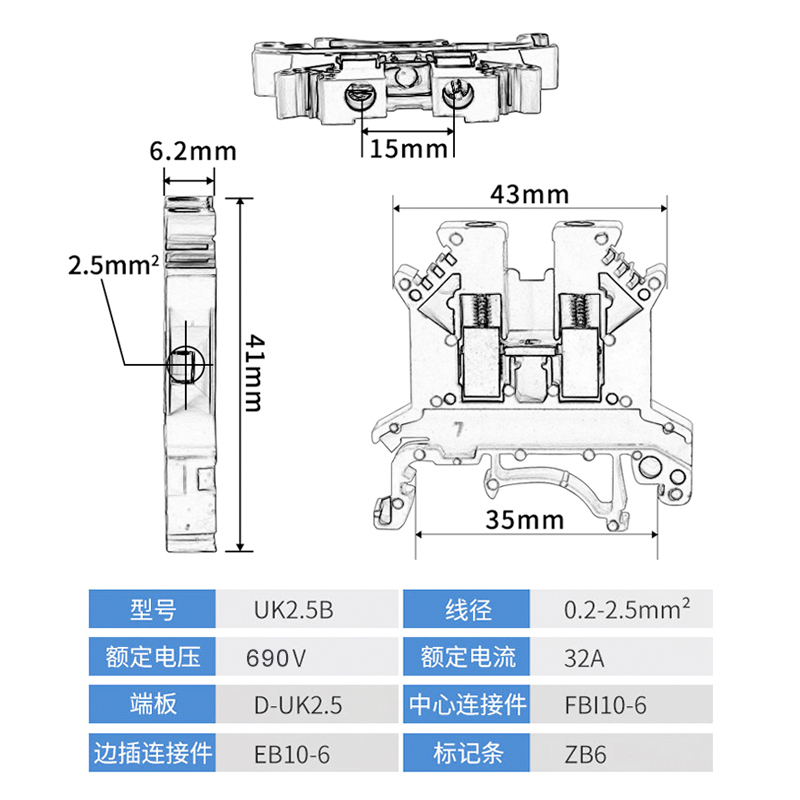 UK2 UK2 5b wiring terminals 2 5MM squared copper pieces flame retardant 2 5N voltage screws rail style 5N 6N terminal platoon