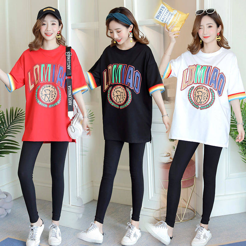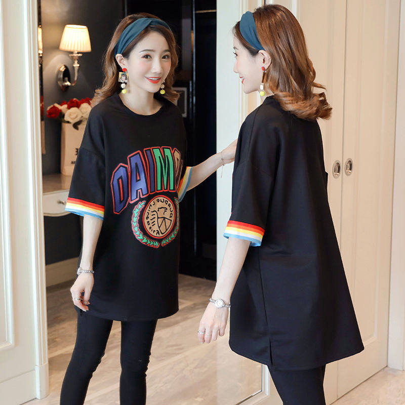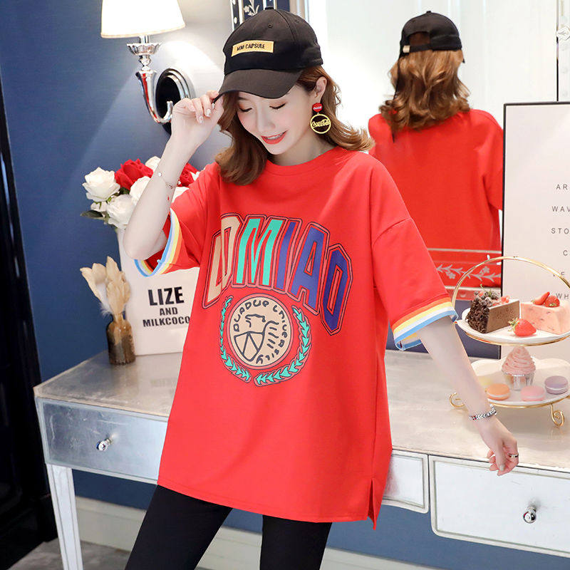 New version of pregnant woman Summer clothing T-shirt Fashion style Summer short sleeves Long version loose on clothes gestation woman Pregnant Belly Woman