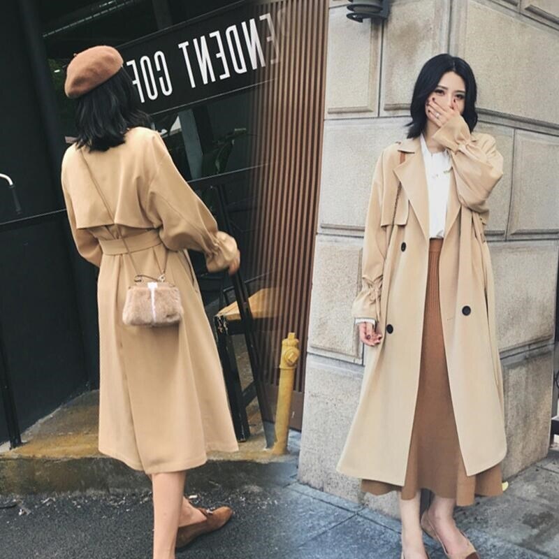 2021 The new spring and autumn caramelea chameleon woman with a long version of Korean version Herbenwind bursting with a small sub-knee jacket