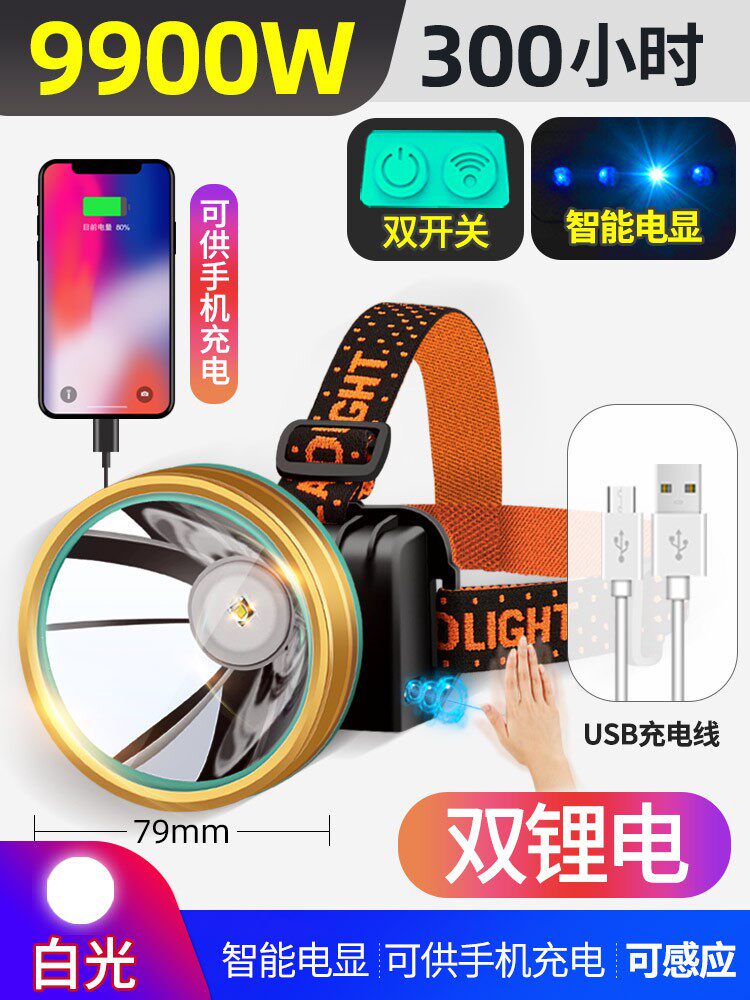 9900W headlight strong light charging super bright head-mounted led yellow light night fishing xenon flashlight outdoor searchlight miner's lamp