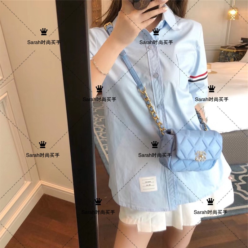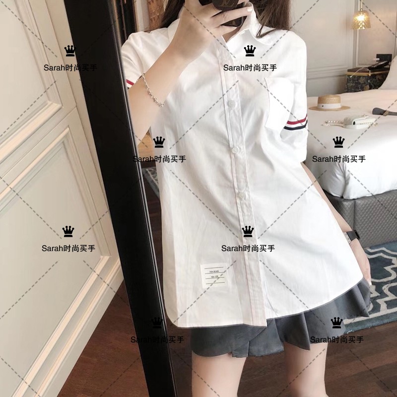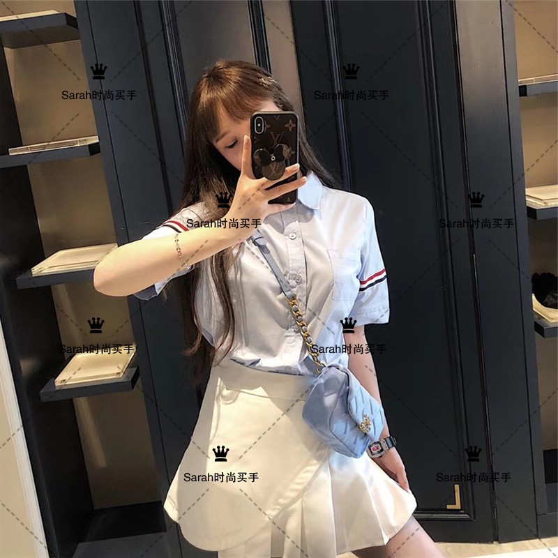 Thom Browne short-sleeved shirt 22 spring-summer B classic double-armed cotton versatile shirt for men and women