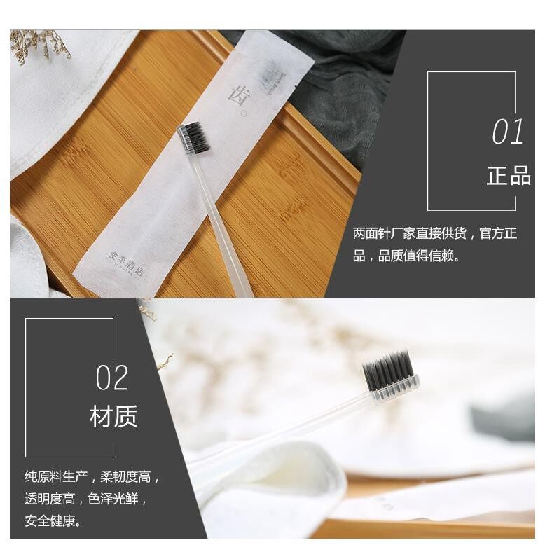 The same brand new toothbrush with bamboo charcoal sharpened silk bristles in the whole season hotel for one-time use of 50 original white dark gray