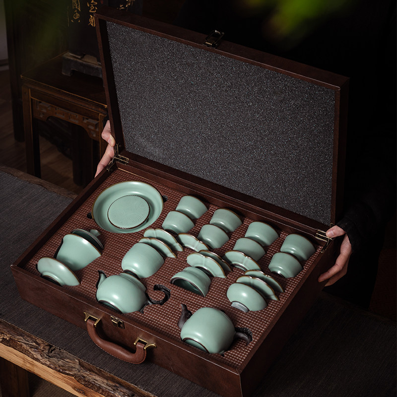 Ruyao Gongfu tea set set High-grade light luxury household living room Jingdezhen Teacup Ceramic teapot cover bowl gift box