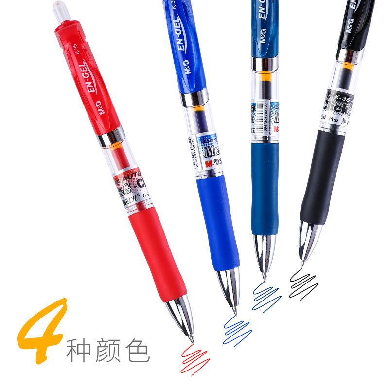 Morning light pressing in motion Chinese pen K35 water-based pen student with exam carbon black water-based signature pen core 0 5mm press type Sub-warhead ballpoint pen ink blue black red pen teacher office stationery supplies
